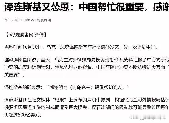 泽连斯基称,请中国帮帮乌克兰。泽连斯基在记者会上说:“谈到中国,首先,我认为中国有兴趣和欧洲、欧盟洽谈关系、洽谈经济往来,我是这么认为的。” “请中国帮帮乌克兰”,泽连斯基在记者会上的公开呼吁,搭配“中国有兴趣和欧洲、欧盟发展经贸关系”的表述,瞬间引发国际社会广泛关注。这番看似委婉的请求,既透着乌克兰当下的困境,也暗含对中乌关系及中欧合作的考量,而中国的回应始终坚守中立立场,用实际行动诠释着“帮”的真正内涵。 俄乌冲突持续发酵至今,乌克兰面临的压力与日俱增。能源设施受损影响民生保障,农业生产与出口受阻冲击经济根基,大量民众流离失所,重建需求迫切却缺乏足够资源支撑。 在这样的背景下,泽连斯基的求助并非偶然,中国作为全球第二大经济体、联合国安理会常任理事国,其在国际事务中的影响力和资源调配能力,成为乌克兰寻求支持的重要考量。而他特意提及中国与欧洲的经贸往来,实则是希望借助中欧合作的大背景,推动中乌关系进一步深化,为乌克兰争取更多实际支持。 事实上,中国对乌克兰的帮助从未缺位,且始终坚持人道主义初心与中立原则。2025年以来,中乌已开展三次高层视频会晤,中方在每次沟通中都明确表态,致力于劝和促谈,推动双方回到谈判桌前。 同年5月,中国向乌克兰提供了价值2000万元人民币的人道主义援助物资,涵盖食品、药品、保暖物资等关键民生用品,这些物资通过联合国难民署精准送达乌克兰东部冲突地区,有效缓解了当地民众的生活困境。 在经济领域,即便受冲突影响,中乌合作也未中断,2025年上半年双边贸易额仍达32亿美元,其中中国从乌克兰进口的农产品金额同比增长15%,玉米、葵花籽油等特色产品通过中欧班列持续运往中国,为乌克兰经济注入宝贵活力。 中国的帮助始终坚守底线,绝不干涉他国内政,也不向冲突任何一方提供武器,这一点早已明确且一贯。中国常驻联合国副代表耿爽曾在联大审议乌克兰问题时公开重申,中方始终严格管控军民两用物项出口,从未向冲突双方输送武器,这一立场既符合国际法基本准则,也为推动局势降温保留了空间。 联合国秘书长古特雷斯也强调,俄乌冲突的解决需要所有国家支持配合,中立立场不应被指责,劝和促谈才是关键所在。 泽连斯基的求助背后,是乌克兰对停火止战、恢复和平的迫切渴望。中国一直积极推动俄乌和谈,多次呼吁双方保持克制,通过对话协商解决分歧,还发布政治解决方案文件,为冲突降温提供具体路径。 但和平的实现离不开各方共同努力,单纯的物资援助只能解一时之困,真正的“帮”是推动局势回到谈判轨道,让乌克兰民众早日重返家园、恢复正常生产生活。 中国与欧洲的经贸往来确实密切且持续深化,这为中乌合作提供了良好环境,但这并不意味着中国会偏离中立立场。中国扩大对乌克兰的市场开放,为乌克兰企业进入中国市场提供便利,这些举措纯粹基于平等互利的贸易原则,不附加任何政治条件,也与冲突局势脱钩。 这种“生意归生意、援助归援助、和平归和平”的清晰边界,既维护了中乌双方的共同利益,也彰显了中国作为大国的责任与担当。 国际社会对泽连斯基的求助反应不一,有人理解乌克兰的困境,支持中国加大援助力度;也有人担忧外部干预会让冲突升级,强调中立调解才是根本出路。 中国的立场始终清晰:愿意根据乌克兰的实际需求,继续提供必要的人道主义援助,同时坚定推动停火止战和政治解决进程。 俄乌冲突的解决没有捷径,需要各方放下分歧、相向而行。泽连斯基的求助让中乌关系再次成为焦点,而中国的回应既体现了人道主义关怀,也守住了国际公平正义的底线。真正的帮助,从来不是简单的物资输送或立场倾斜,而是为和平铺路搭桥,让冲突各方重回谈判桌。 对此,你们有什么看法,欢迎评论留言~