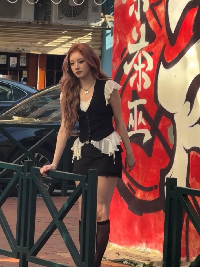 宋雨琦澳门街拍,宋雨琦澳门被偶遇,谁懂这个粉发黑裙的雨琦的美感呢,期待住和你的音乐节的见面啦~