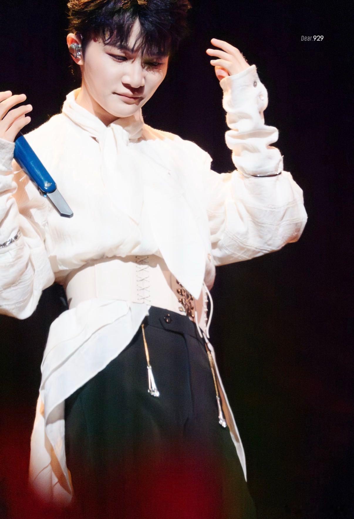 当他开口,那空灵纯净的嗓音如潺潺溪流,淌入每个人的心田;而他的每一个动作、每一个眼神,都与这身白色束腰衬衫完美融合,在舞台上绽放出独一无二的魅力。这种舞台张力,是实力与气质的双重加持,让人不由自主地沉浸其中,目光再也无法从他身上挪开,只愿沉醉在这场视听盛宴里,与他的音乐一同翱翔。