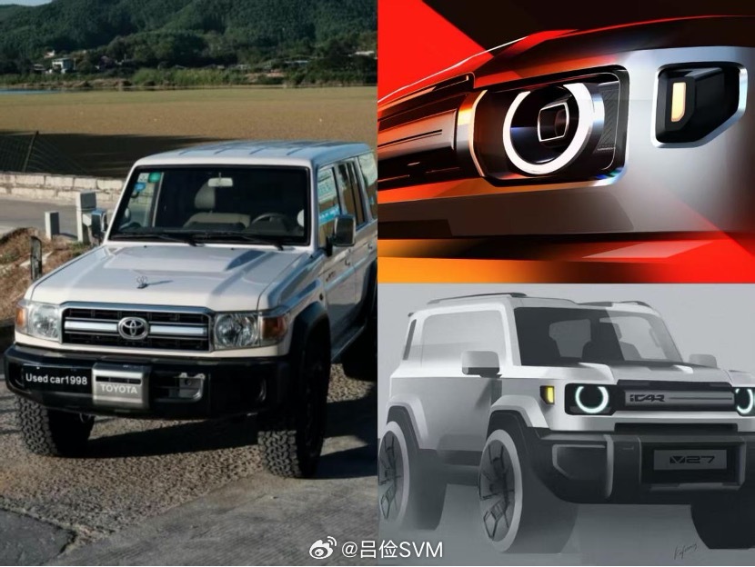 上世纪七八十年代的硬派SUV,最有机械感,线条方正、结构简单。那种设计语言,放到电动时代看,反而成了稀缺资源。V27作为盒子车,是相对容易复刻当年的硬朗机械感的。