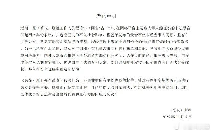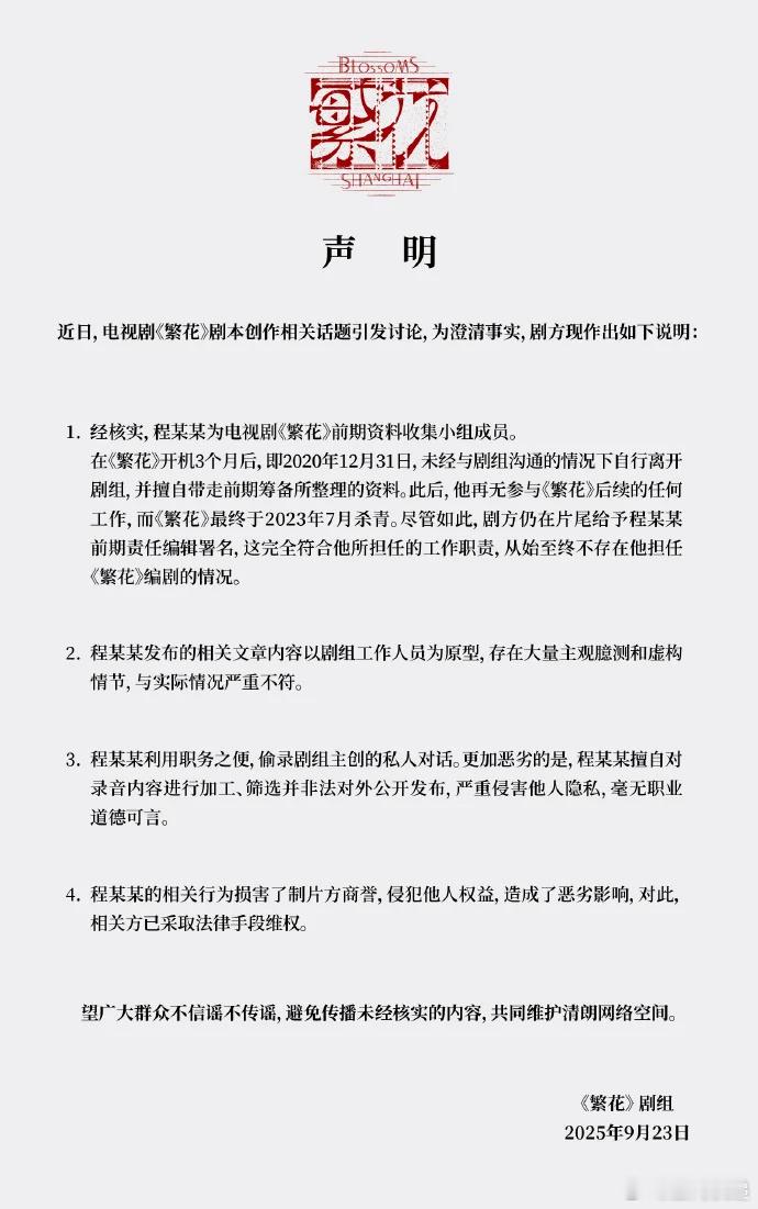 繁花这波声明三连杀,从“敬请留意”的温柔提醒,到“严正声明”的严肃表态,再到“强