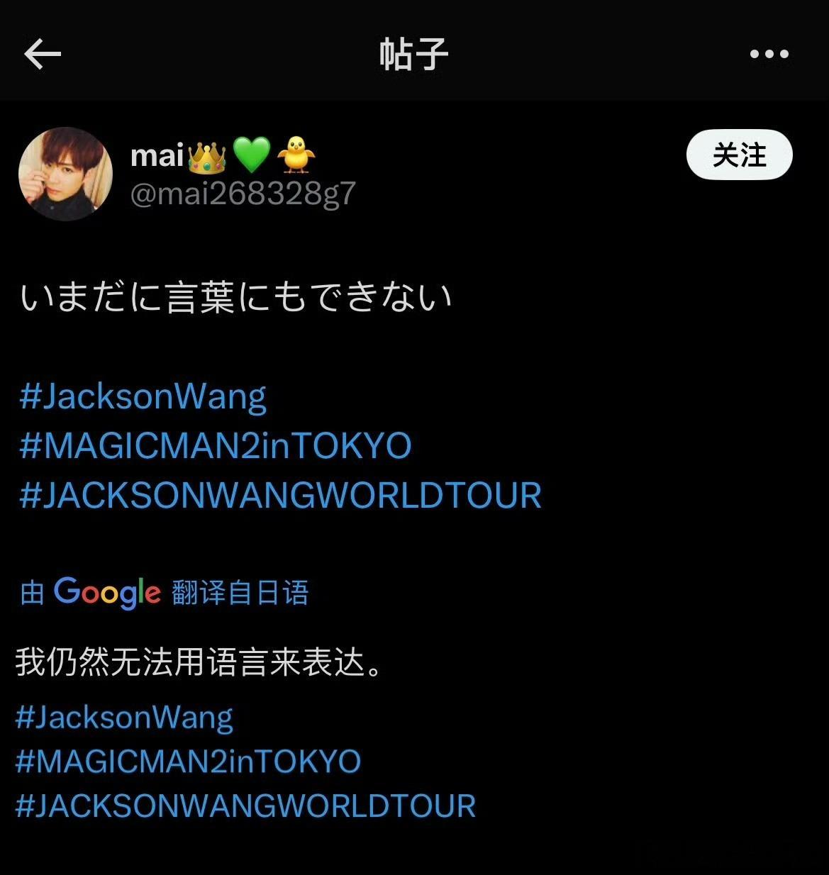 王嘉尔东京演唱会引名流圈热捧 昨晚王嘉尔东京演唱会成了名流圈的音乐狂欢派对,半个日本名流圈都来参与这场音乐盛宴,刷视频时那超嗨的氛围就像一幅绚丽的画卷,外网社媒被JACKSON刷屏全是赞美,after party嗨不停,后续场次速安排!