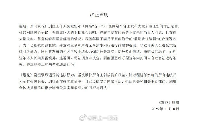 如今这个古二算是破罐子破摔了,看样子他以后不想在这个圈子里混了,也算个狠人。繁花剧组称古二录音内容失实
