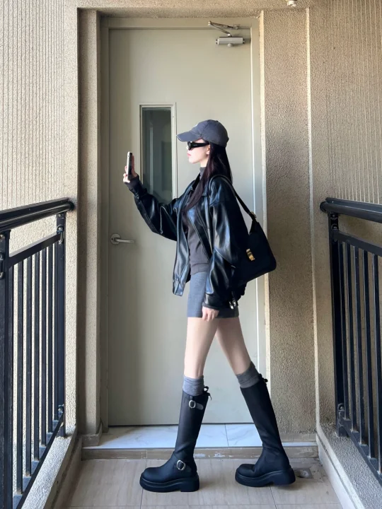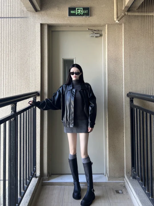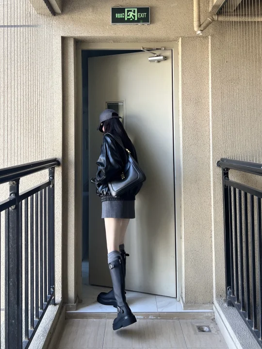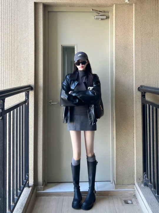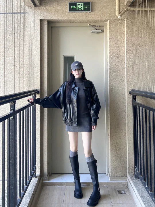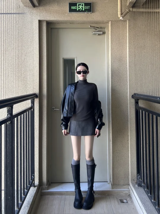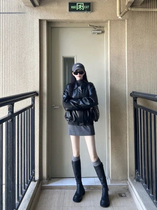 灰调衬衫+黑皮裙:把职场穿搭穿出氛围感