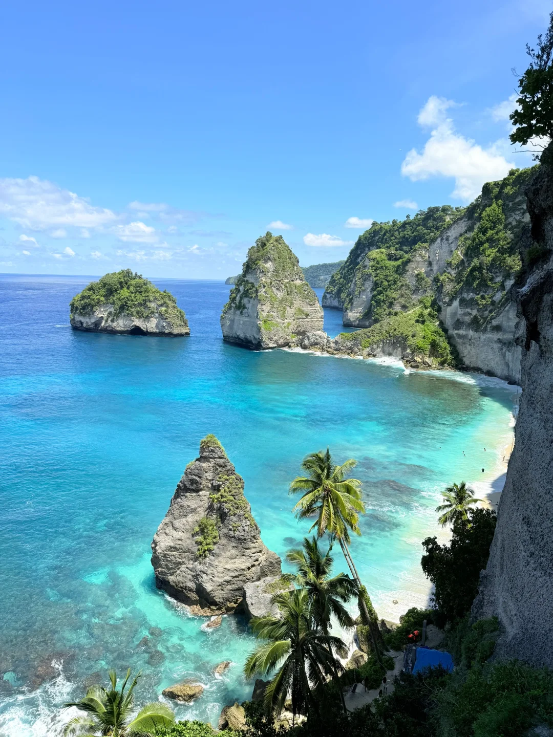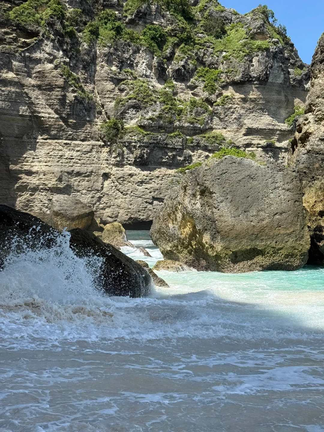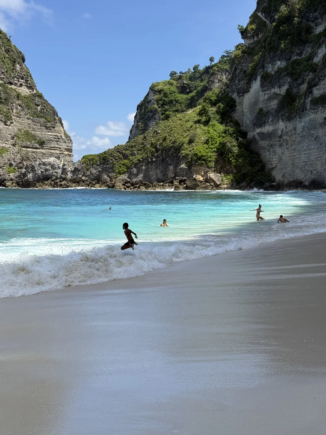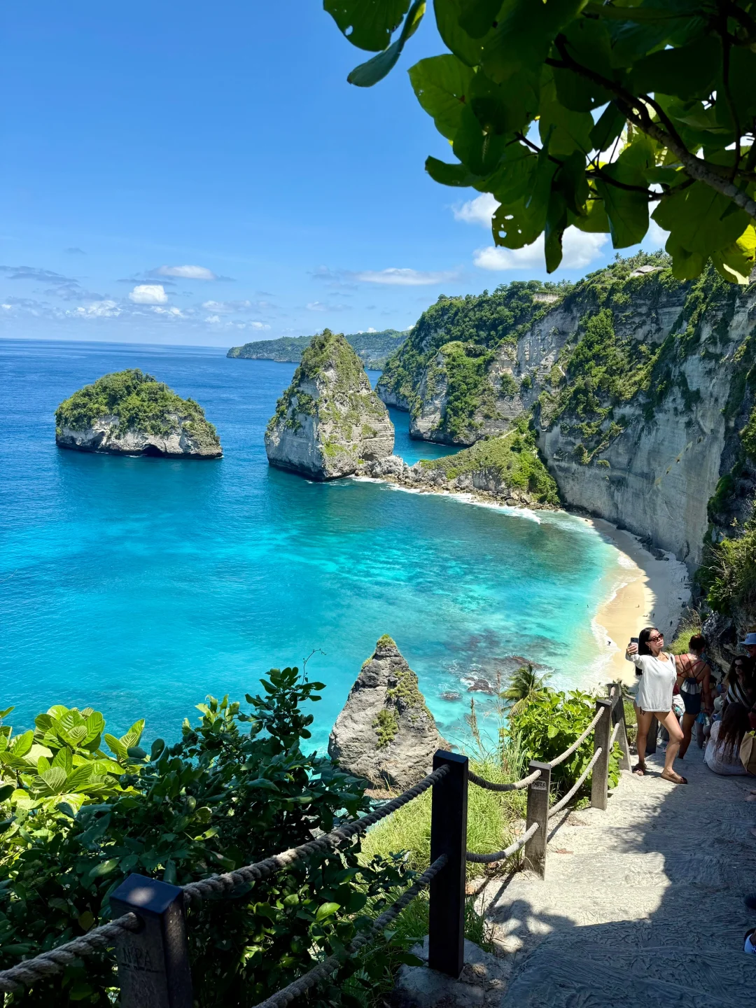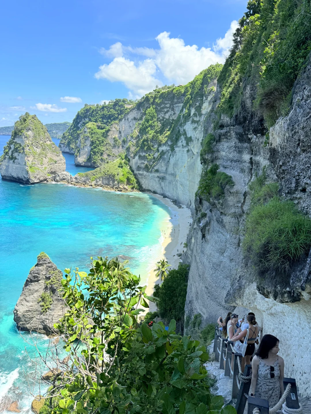 我们当时只有一天时间,只玩了精灵坠崖和钻石沙滩 个人觉得佩尼达岛上zui值得去的地方就是钻石沙滩! 就在东线,真的很美!!! 到了之后,下到沙滩的路来回需要走半小时左右 路也没有想象中那么险,但是还是要注意安全 这里进来有门票,🎫4.5w印尼盾/人 还有悬崖秋千可以玩 漂亮妹妹们,建议大家穿比基尼来玩 因为下到沙滩上浪比较大 穿长裙打湿了不好走路