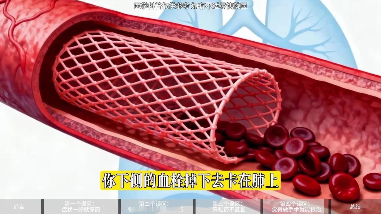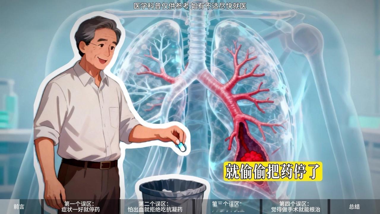 治肺栓塞这些坑别踩!⚠️症状缓解就停药?大错特错!抗凝治疗是核心,至少要持续三个月。反复血栓病史或有高危因素的人,可能需要终身抗凝。血栓溶解慢,症状消了不代表血栓消失,停药会使复发风险大增。 ⚠️怕出血就拒绝用药?别慌!抗凝确实有出血风险,但不抗凝肺栓塞死亡风险更高。规范用药能显著降低死亡率,出血风险可控,医生会根据凝血结果调整方案。 ⚠️只吃药不复查?不行!抗凝期间要密切监测凝血功能,控制INR达标才有效果。INR太低防不住血栓,太高易出血。还需定期复查肺部CT,看血栓溶解情况决定疗程。 ⚠️做了手术就不用吃药?不对!血栓滤网并非万能,仅用于预防下肢血栓脱落堵塞肺部,血栓稳定后需取出。滤网不能解决肺内血栓问题,规范用药才是核心。 划重点:按疗程服药,别怕出血,定期复查,手术不能替代规范用药。