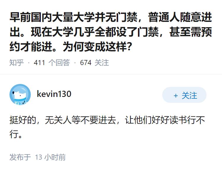 早前国内大量大学并无门禁,普通人随意进出。现在大学几乎全都设了门禁,甚至需预约才能进。为何变成这样?