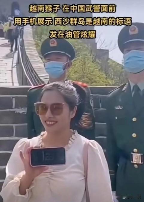 越南女鬼长城前挑衅! 当着中国武警的面,在长城上举着手机炫耀越南语标语,以为没人能看懂就肆意妄为?西沙群岛自古属中国,岂容跳梁小丑信口雌黄? 谁忘了,中国曾倾尽全力援越? 抗法战争时,我们送武器、派顾问,帮越南筑牢防线;抗美援越期间,17万中国军人赴越,1100多人牺牲在异国他乡,用鲜血换来了越南的独立统一。 可越南转身就上演“农夫与蛇”:驱赶16万华侨、边境开枪射杀中国军民,逼得中国发动对越自卫反击战。 “恩人当仇人,援助喂白眼狼”,这份忘恩负义的基因,竟延续至今。 这女人的挑衅绝非偶然,而是越南长期“利益双标”的缩影: 一边从中国市场赚得盆满钵满, 一边在南海问题上小动作不断; 一边抄着中国的发展经验, 一边抱着“领土野心”碰瓷主权。 恩将仇报者,终难长久; 觊觎主权者,必受严惩。 礼仪给懂规矩的人,重拳砸挑衅的鬼。这个越南女人的行为,已触碰中国法律和主权底线,理应依法严惩、终身禁入。 让所有觊觎中国领土的人明白:“礼仪给懂规矩的朋友,铁拳砸向越界的豺狼”; 也提醒越南,靠碰瓷换不来利益,靠背叛赢不来尊重,好好合作才是唯一正道。