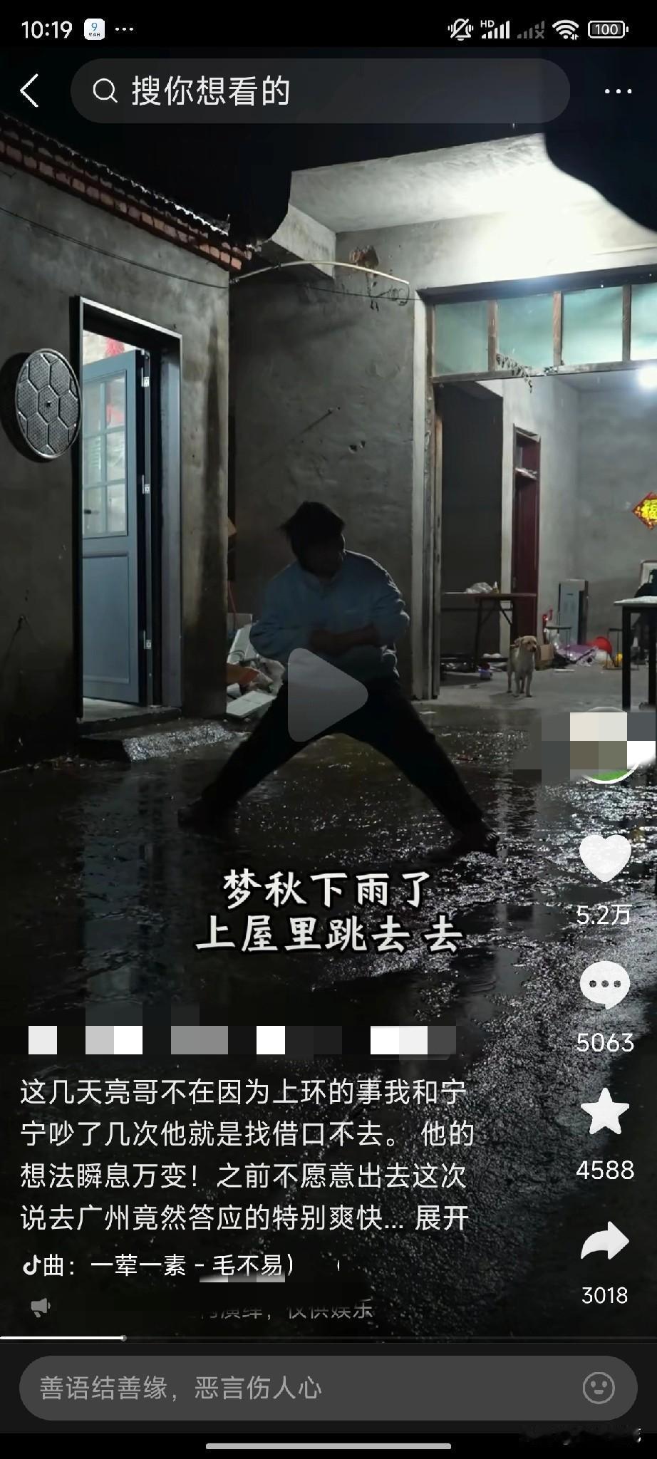 下那么大的雨,梦秋还在雨中扭大腚,妙妙在乱吃东西,还有一个脚不好的宁宁,没人做饭