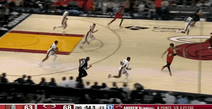 活久见!嘴哥居然又扣篮喽! 在今天NAB常规赛热火对阵开拓者的第二节比赛中,嘴哥威金斯先是在底角命中一记三分,随后又在防守反击中完成双手暴扣! 在嘴哥的爆发下,热火第二节单节狂轰45分,上半场砍下72分,成功反超开拓者!