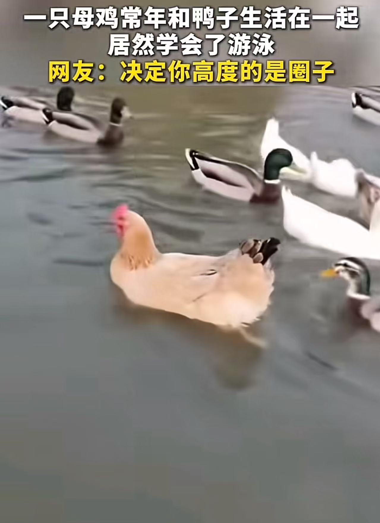“母猪会爬树已经不稀奇了,因为母鸡都会游泳了!”一只母鸡常年和一群鸭子生活在一起,居然学会了游泳!网友:事实证明,决定你高度的是圈子!