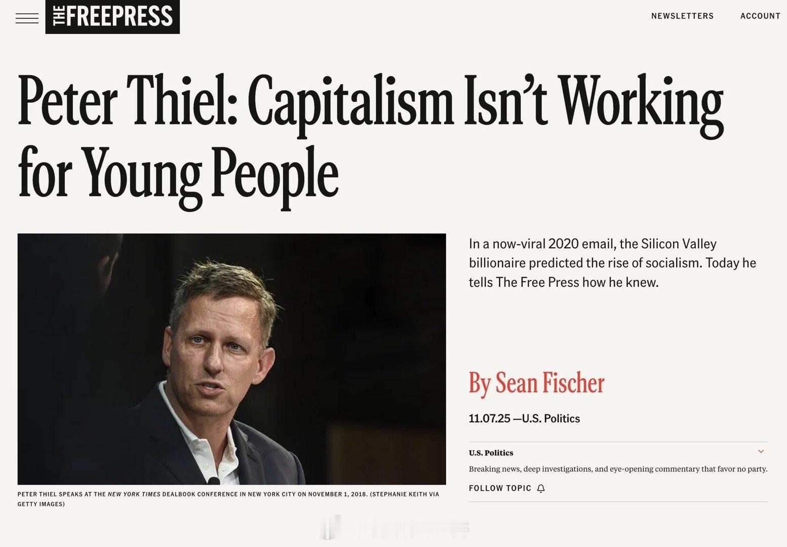 彼得·蒂尔:如果你在1970年毕业,那时没有学生债务,再对比一下千禧一代的经历:太多人上大学,他们什么也没学到,最后背上了极其沉重的债务。学生债务就是我长期以来谈论的代际冲突的一种表现形式。
