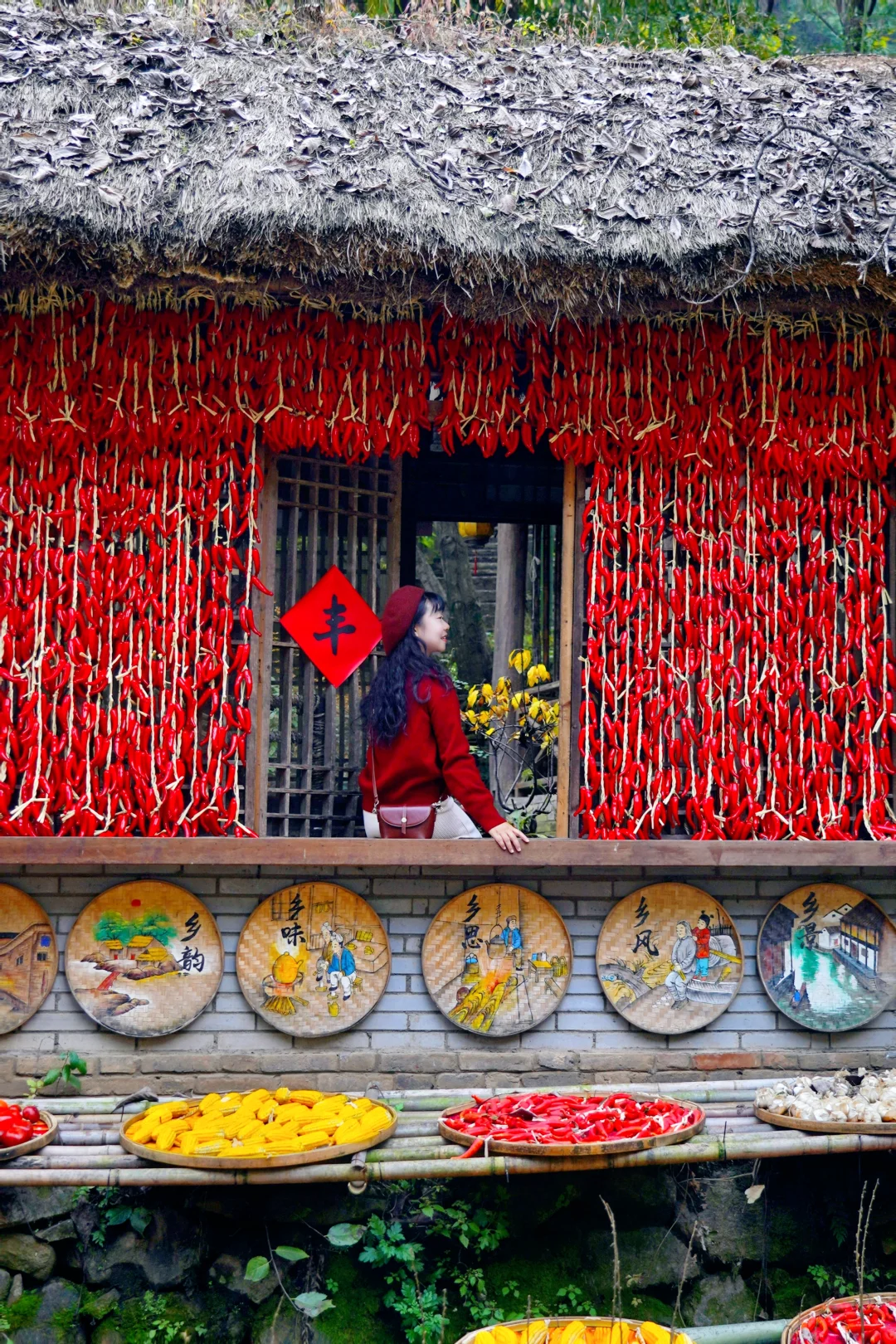 层林浸染的秋色里藏着农耕村的晒秋美景