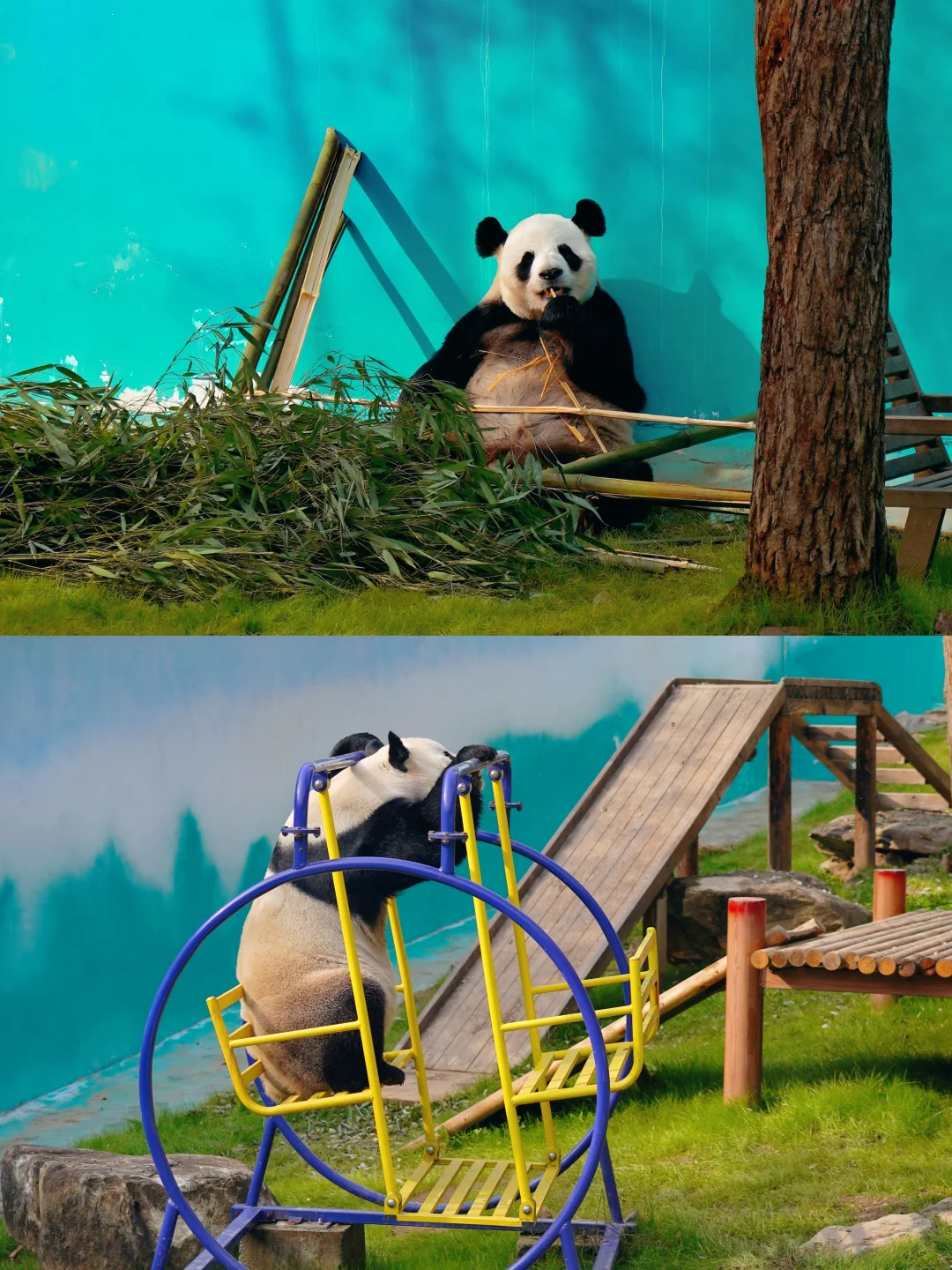 网红大熊猫灵岩和迈迈也太可爱了,现场整活萌翻全场;坐着观光车进入猛兽区投喂,0距离感受东北虎、黑熊、狮子扒拉窗户的刺激