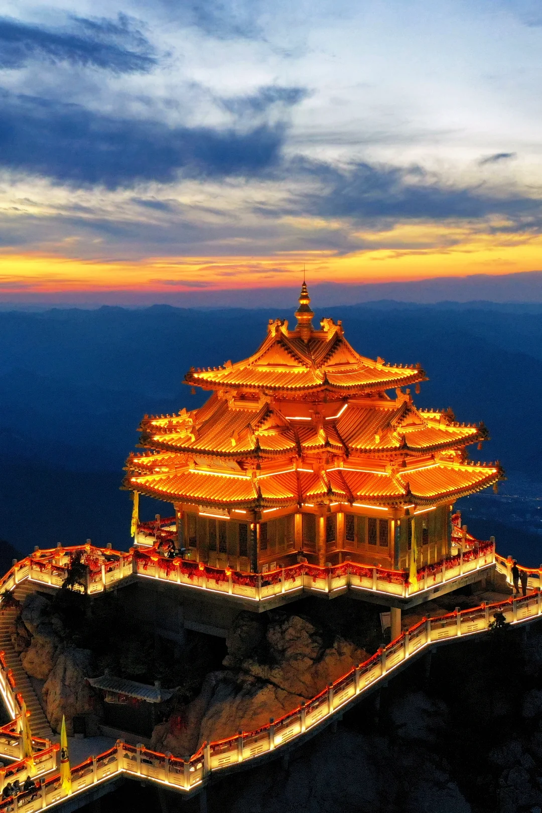 不愧是被明神宗诏谕为“天下名山”,金顶道观群如仙侠里的云顶天宫。诗句中的天上宫阙在此有了具象化!