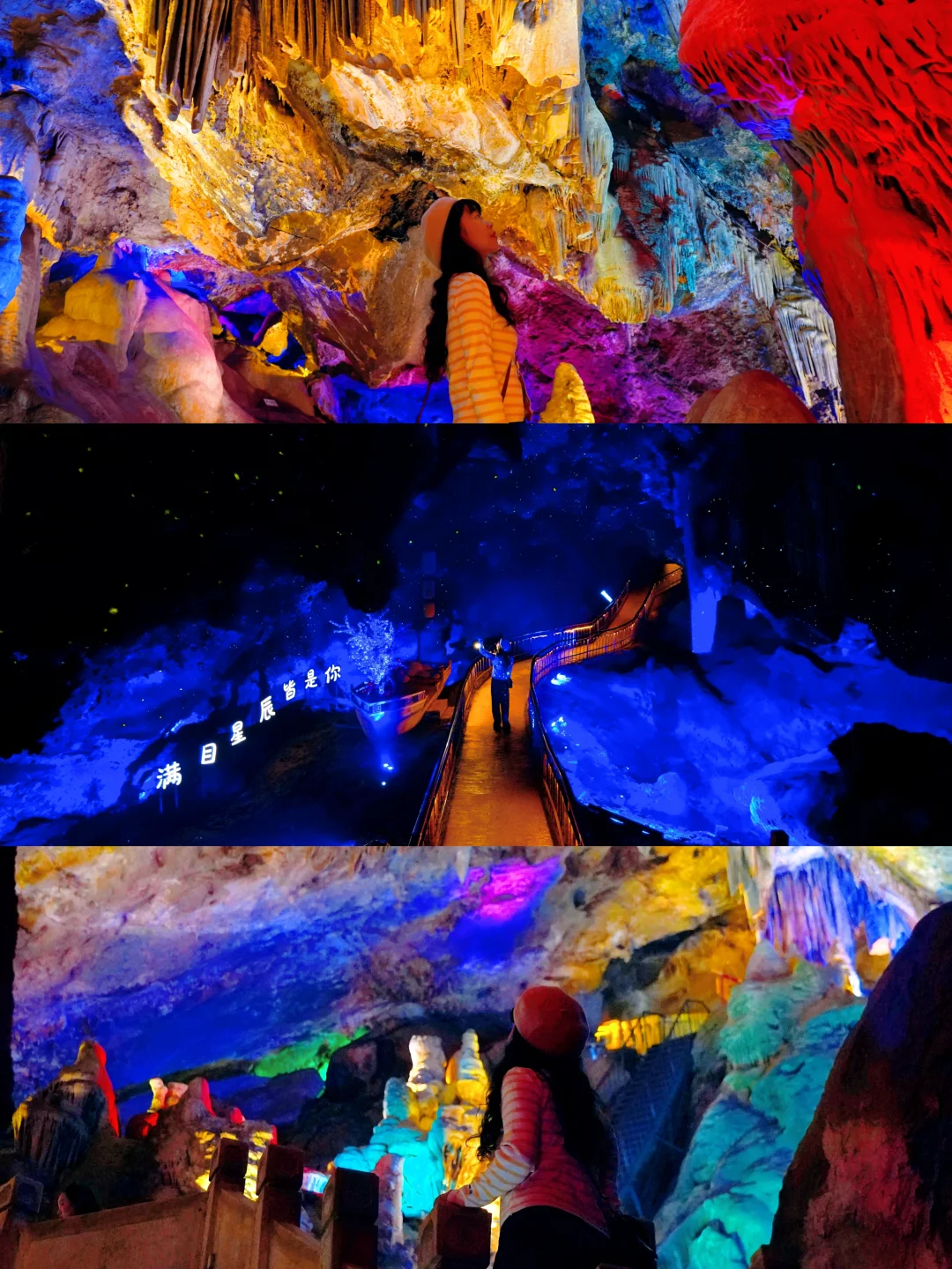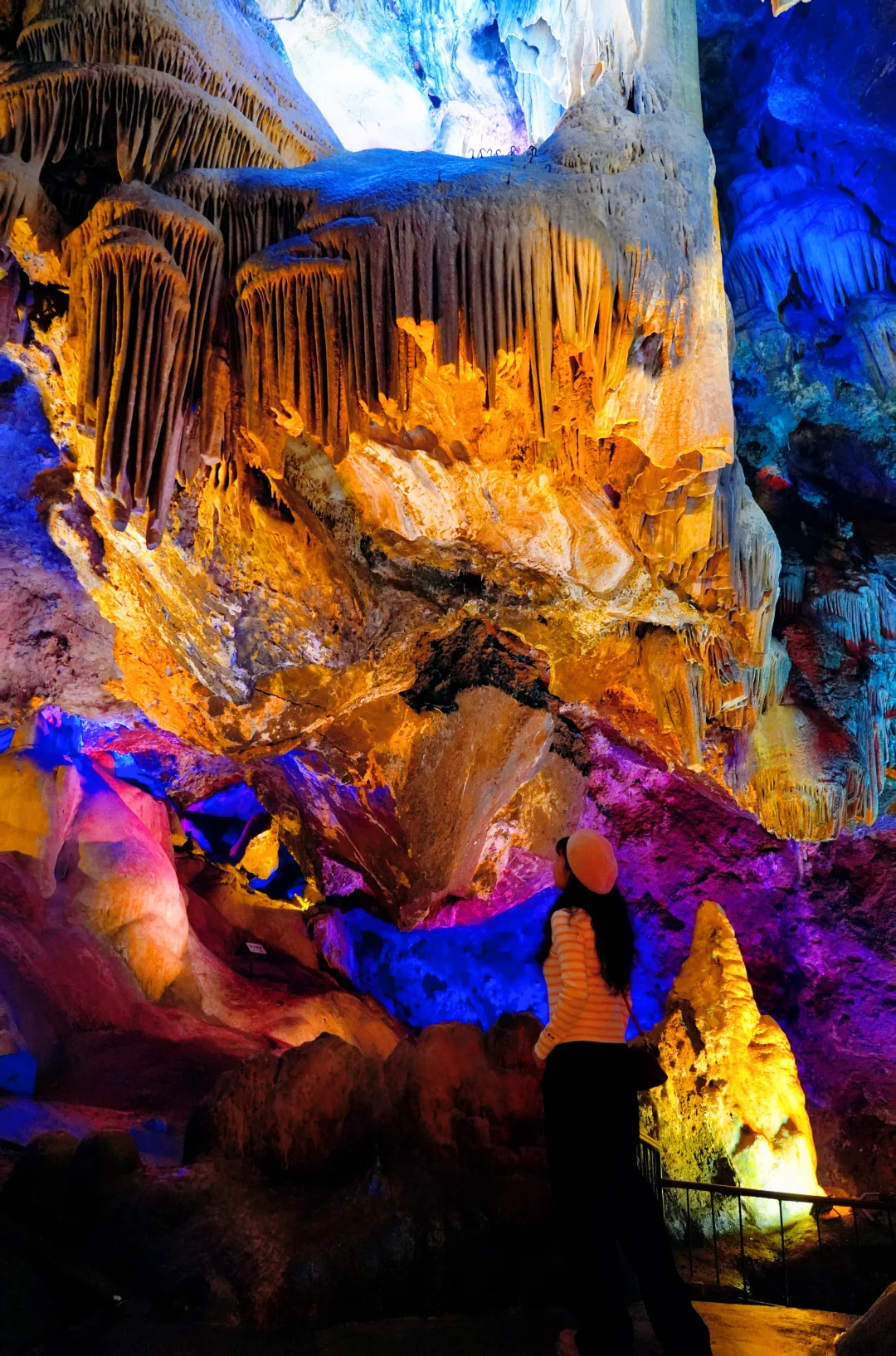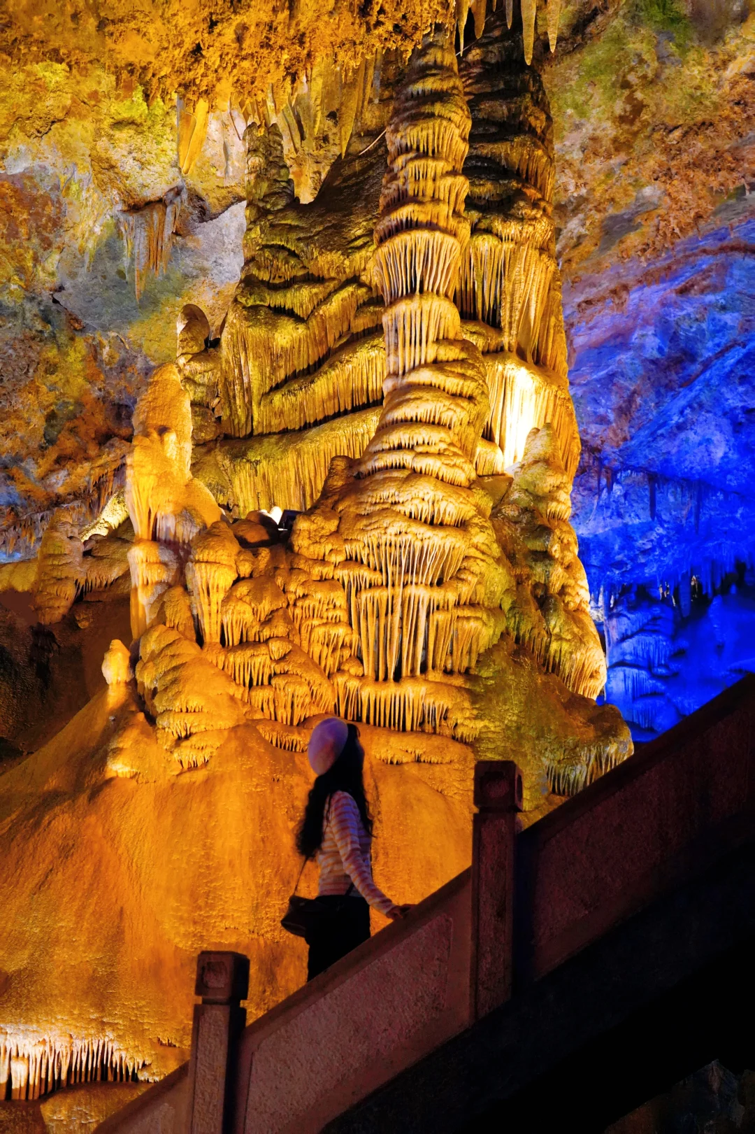 溶洞内钟乳石历经万年沉淀,形成了如今这般所见景象,在灯光的映照下流光溢彩。玉柱潭、将军石、洞天河、瑶池宫等景观惟妙惟肖,让人惊叹大自然的鬼斧神工