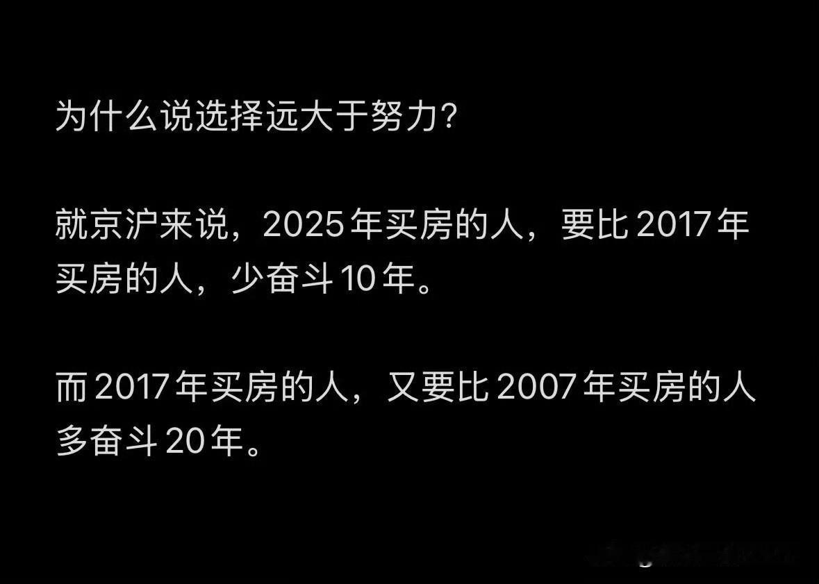 有点意思![比心] 我们常常说“选择大于努力”,说起来概念可能很模糊,但是,看看下面这个关于买房时机的选择,是不是一目了然,感受颇深啊? 直接说吧,对于买房这件事情来说,对比一下,你看看你是少奋斗了10年?还是多奋斗了20年?[捂脸][捂脸][捂脸]