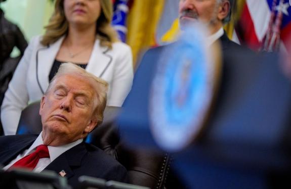 特朗普也当众睡着了!风水轮流转,他经常揶揄前总统拜登“瞌睡乔”的外号,也被人冠名到自己头上。 特朗普在椭圆形办公室发表声明时,闭上眼睛的照片在社交媒体上迅速传播,被看热闹不嫌事大的网民紧紧抓住,对特朗普的任职能力提出质疑。 随后,白宫工作人员迅速反应,称“总统没有睡觉;事实上,他在整个宣布过程中都在发言,并回答了媒体的许多问题。”,并指责但“坏的,自由的媒体”试图将其呈现为负面故事,而不是突出事件的实质。