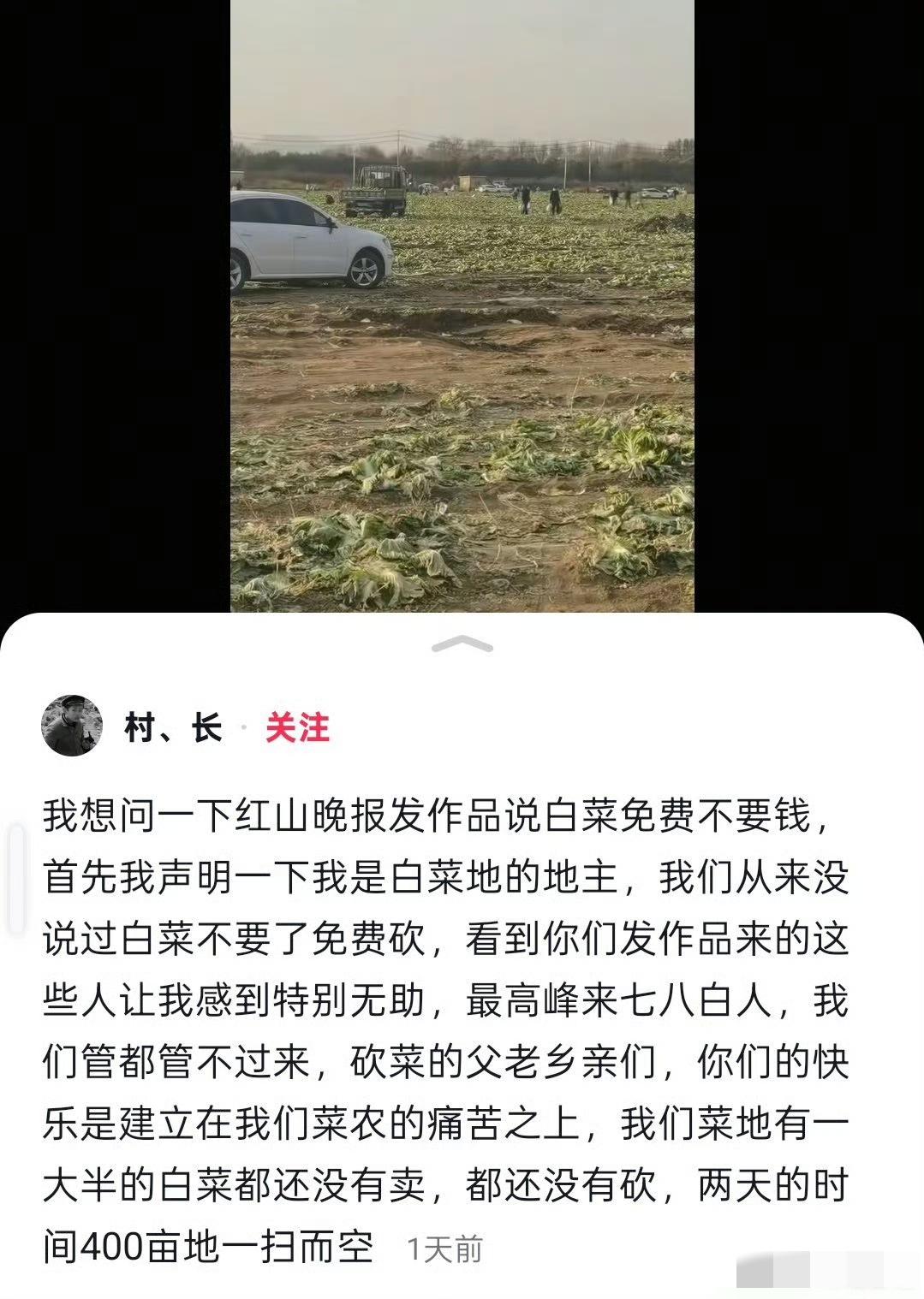 数百人涌入200亩白菜遭抢。造谣种植户的农产品“免费收割”,套路已经开始固化:造