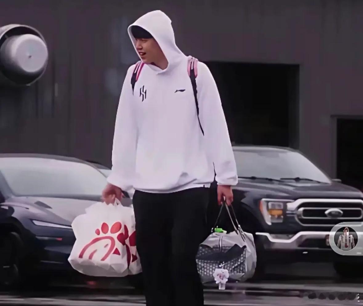 “你们看到的他手中提了一大袋麦当劳,那是球队后勤专门为球员订购的,跟普通人吃的不一样,没有加任何油和糖!”