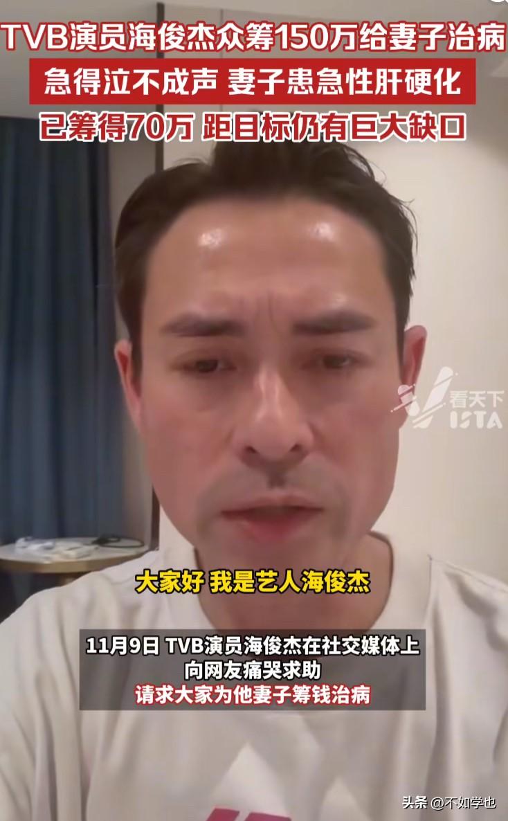 为什么稍微有点知名度人遇到患病的事儿,首先想到的不是卖房卖车,而是在网上求助?近日,TVB演员海俊杰在网络上痛哭为妻子筹钱治病上了热榜。 有网友说像这种器官移植的,时间就是命,要是卖房卖车的话,需要的手续繁杂,时间花的比较久,时间不等人,所以在网络求助。 还有网友说其实很多演员的收入其实并不是我们想的那么丰厚。最近新闻报道里不就有很大一部分演员去景区打工了吗。 演员遇到这种事儿能求助于网络,无论怎样,总有一部分富有同情心的人会帮忙,老百姓遇到这种事儿只能卖房卖车,要么就听天由命。