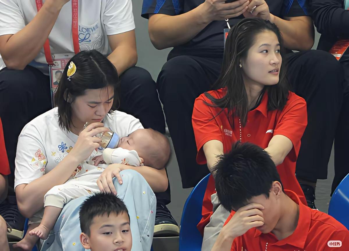 全红婵在看台上给娃喂奶的那一幕,比任何颁奖画面都戳人。 没有聚光灯追着,没有