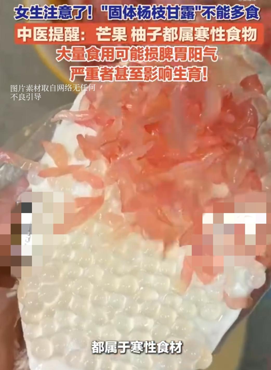 第一批固体杨枝甘露受害者现身:跟风网红美食前,先看清身体的“预警信号” 打开社交平台,一半人在晒固体杨枝甘露的高颜值,一半人在吐槽吃完后的腹痛面黄。这款把芒果、柚子、西米等经典食材做成“可握可啃”形态的网红美食,凭借新奇吃法迅速刷屏,但“受害者”的接连出现,也给我们敲响了警钟。 中医早有定论:芒果和柚子都属于寒性食材,《中药大辞典》中明确将其归类为寒性水果,而女性以血为本,最怕寒邪侵袭 。固体形态让很多人误以为“换了吃法就换了属性”,殊不知大量食用只会加重寒凉刺激——脾胃虚寒者吃了易腹泻,经期女性可能加重痛经,长期累积还会损伤阳气、凝滞气血,这可不是危言耸听 。更值得注意的是,芒果含致敏性蛋白,柚子有机酸含量高,固体形态下食材接触黏膜的机会增多,过敏和胃部不适的风险也悄悄翻倍 。 这让我想起不久前爆火的奶皮子糖葫芦,同样是凭借颜值和新奇感圈粉,同样是让一批人吃出“糖化脸”“肠胃病” 。如今的网红美食,似乎陷入了“颜值>口感>健康”的怪圈:为了博眼球,商家不断叠加食材、创新形态,却往往忽略了食材本身的属性和食用禁忌。我们总在为“打卡”买单,为“跟风”消费,却忘了身体的感受从不会说谎。 其实不是网红美食不能吃,而是我们要学会“理性尝鲜”。寒性体质的人可以将柚子、芒果蒸熟后食用,减少寒凉刺激;健康人群也应遵循“五果为助”的古训,控制食用量,毕竟再好的食材也要适量 。就像医生提醒的,偶尔放纵一次没关系,但别把网红美食当成日常零食,身体的平衡才是最重要的 。 美食的本质是滋养身心,而不是单纯的视觉狂欢。下次再刷到爆火的网红美食,不妨先查一查食材属性,想一想自己的体质是否适合。别让“打卡”变成“渡劫”,也别让一时的新鲜感,换来身体的“后遗症”。你有没有跟风吃过哪些网红美食?有没有遇到过类似的健康问题?欢迎在评论区分享你的经历!
