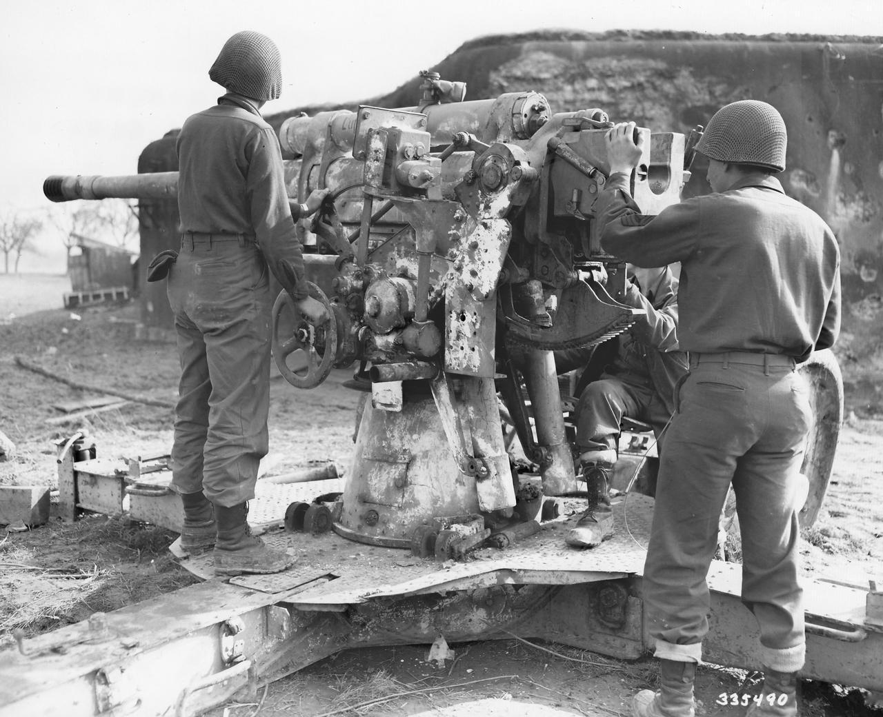 [呲牙] 战利品也得挪挪窝了——1945年,匈牙利,布达佩斯,韦尔迈泽公园。园内陈列着多国火炮展品。 居中:为德制105毫米leFH18轻型野战榴弹炮(参见图2). 其后,(中远景)是苏制76毫米Ф-22-УСВ师属火炮(参见图3)。 右侧,可见缴获的7.62/8.8厘米Flak M31(r)高射炮(由苏联1931年式76毫米3-K高射炮改造为德军88毫米口径,参见图4)。 远景中央,为一门捷克斯洛伐克产37毫米kpúv vz.37反坦克炮(参见图5)。 这批缴获火炮自1941年起即在韦尔迈泽公园公开展示。 [呲牙] 不过,这已经到了1945年了,这批战利品也得挪挪窝了。