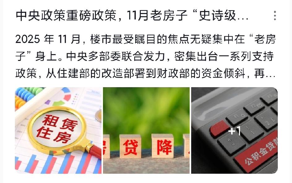 老房子要焕新啦!中央最新政策给老旧小区带来了新机遇,加装电梯让爬楼不再难,管线更新解决了水电暖漏水问题,停车位也扩了容,住起来舒服多了,居住品质那是蹭蹭往上涨。 就拿北京来说,有个小区改造完,房价直接涨了15%;杭州的“原拆原建”项目更给力,回迁房的价格愣是涨了30%。 这次可不是小修小补,是真金白银砸进去的大动作。4250亿专项资金已经到账,财政补贴最高能覆盖电梯费用的一半,住老破小的街坊们终于盼来了好机会,黄金地段的价值也慢慢显出来了。 不过别急着做一夜暴富的梦,到底能涨多少,还得看城市和地段。一线城市核心区的老房子升值潜力大,三四线城市可能也就保住原来的价。小区改造可不是一家一户的事,得街坊们心齐才行——电梯要装,大家得商量着来;钱怎么分也得合情合理。 你家小区开始改造了吗?这波机会能不能抓住,就看你怎么打算啦!来评论区聊聊,说说你家老房子的“新希望”吧