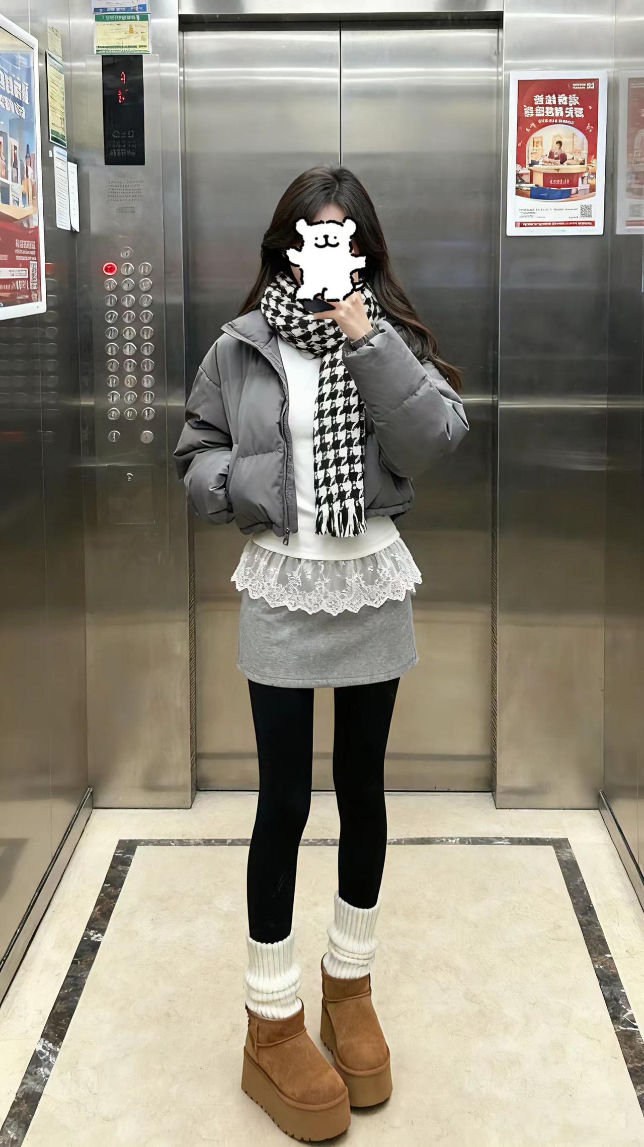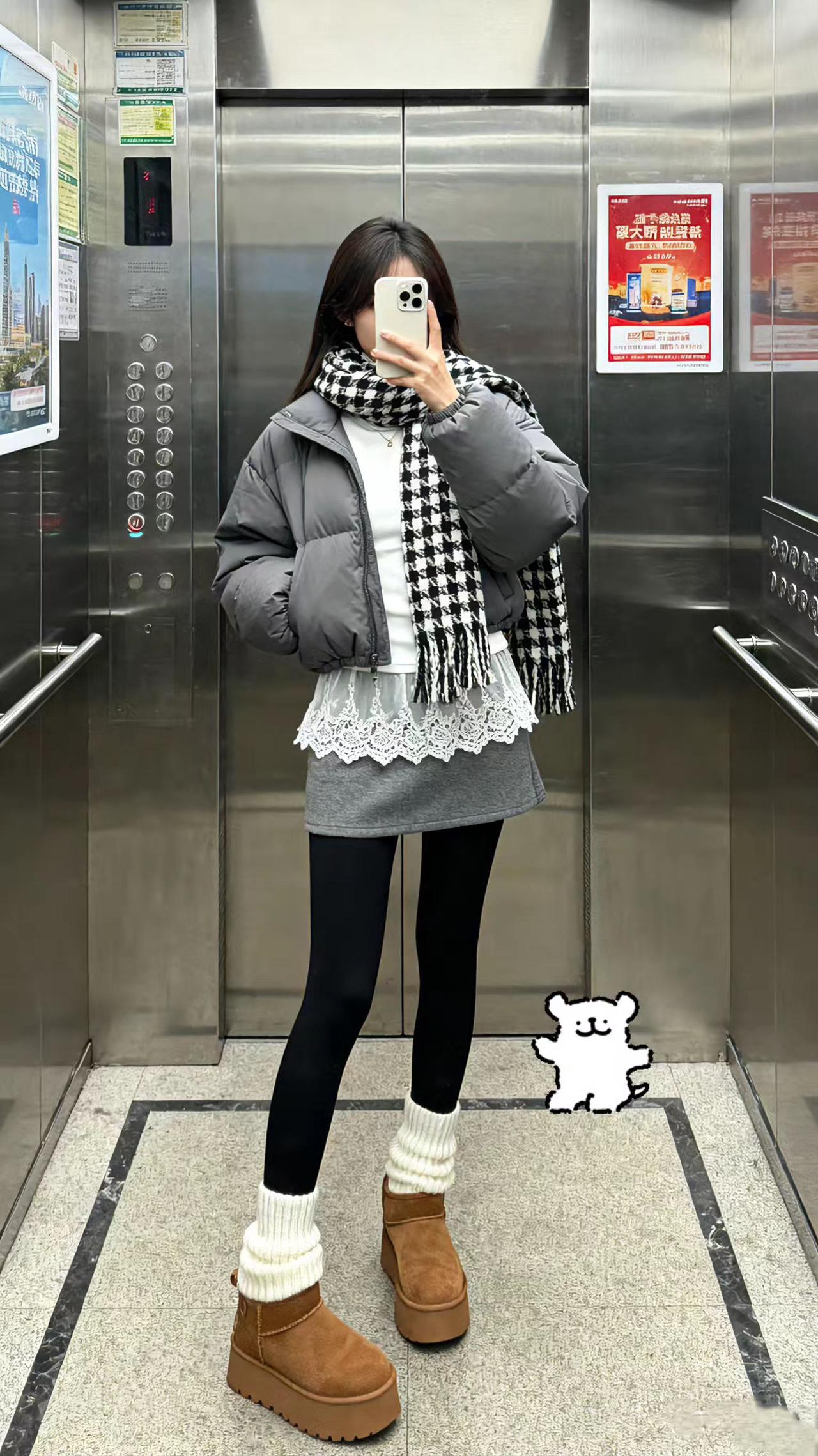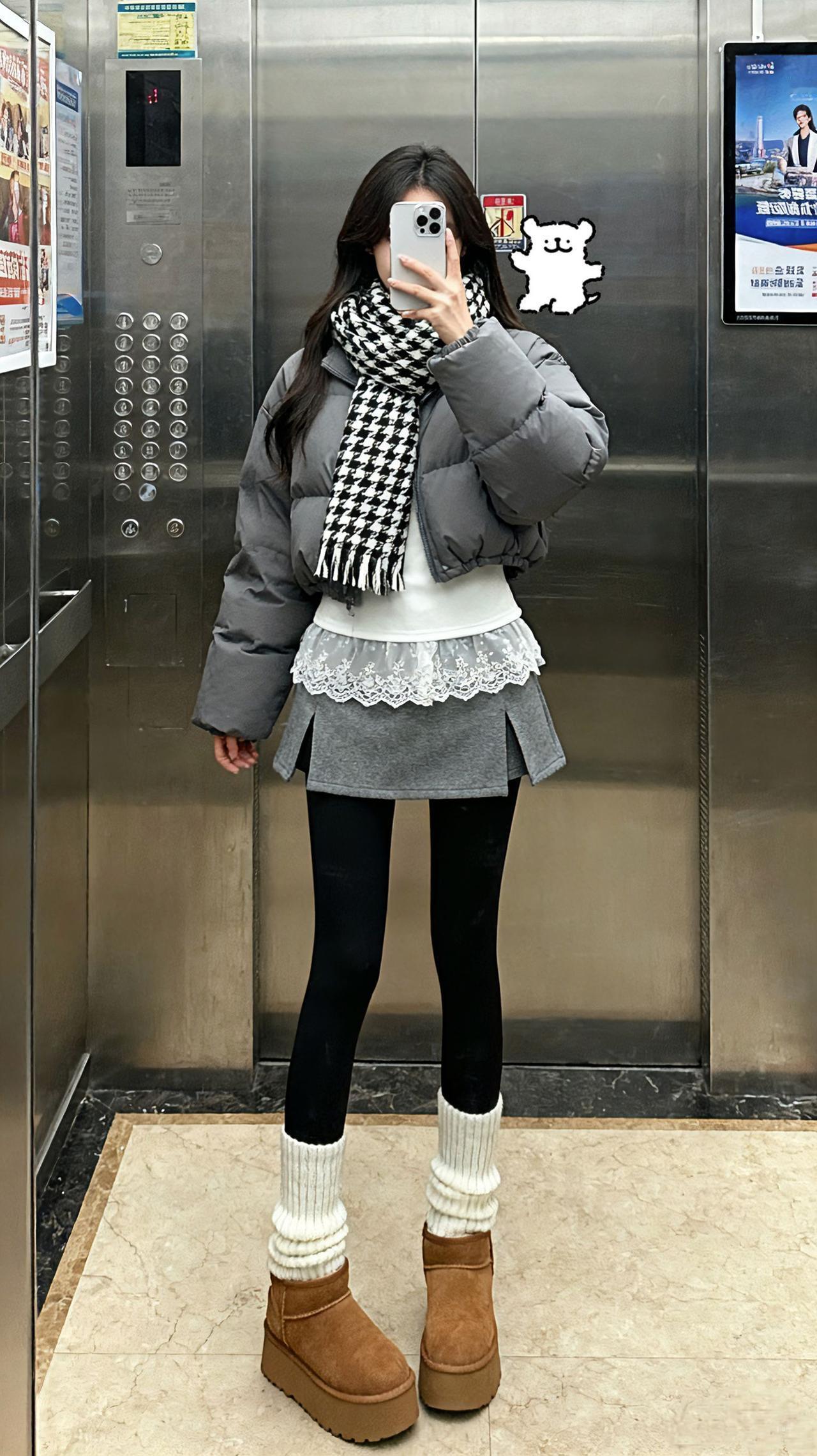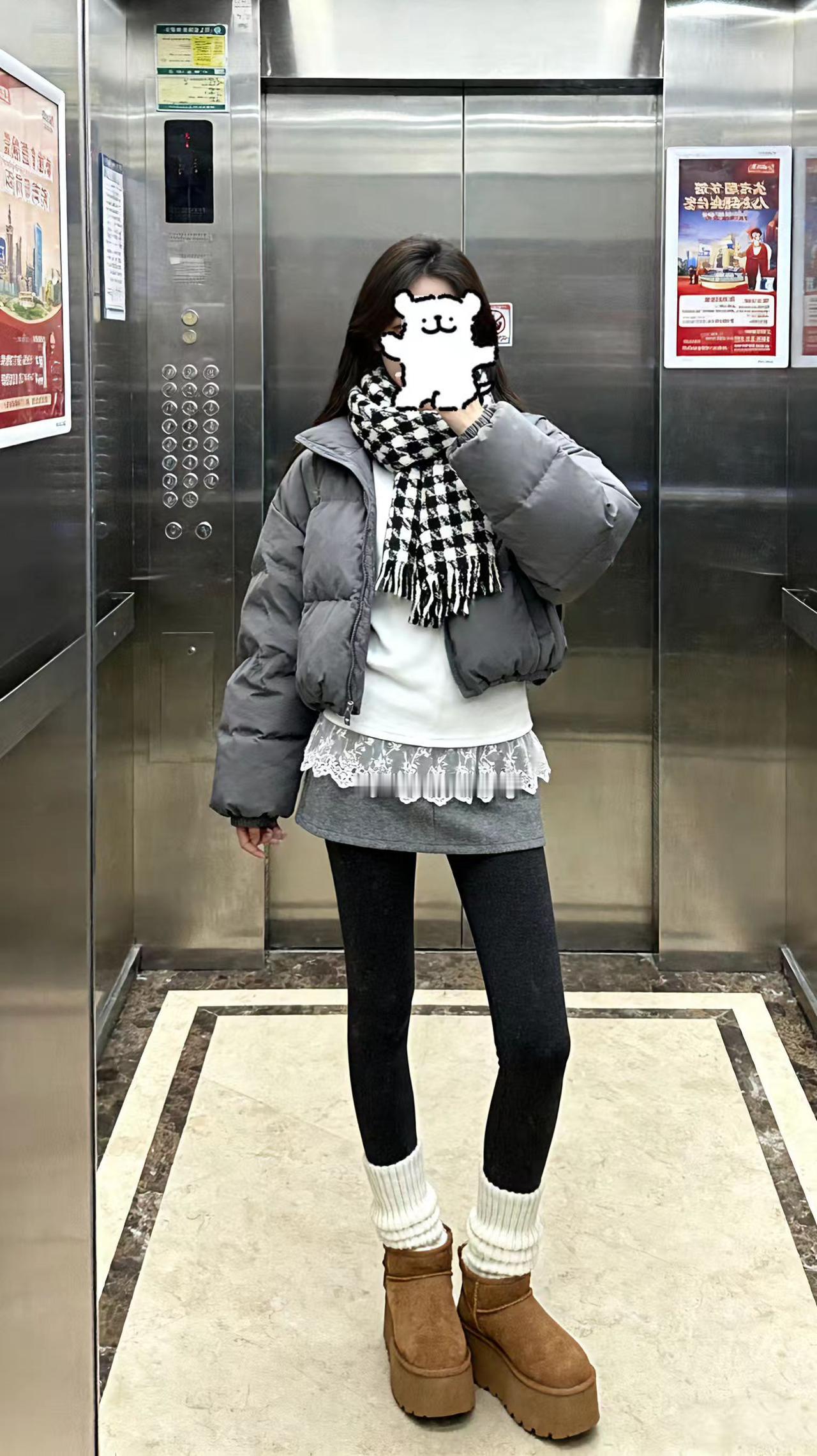厚厚的穿搭。保暖穿搭 休闲穿搭 电梯拍照 每日分享 dou+小助手