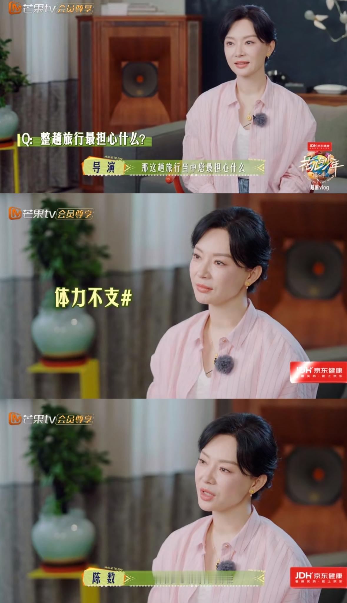 陈数自曝曾环球旅行两年,尝遍美食把肠胃彻底吃坏,以致于后期为了养胃陈数戒掉水果长达两年。很好的美食体验的背后,是她喝了整整一年中药调养身体的痛苦。 所以她在《花儿与少年》最开始的时候就担心自己会体力不支,会跟不上队伍,担心“没劲”的身体让这场旅行也变得无趣。 疯狂养生的现在,是在还当初“放纵”的债。