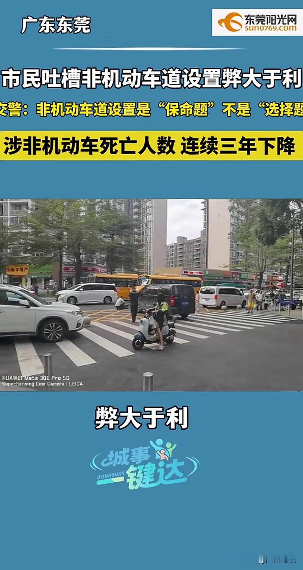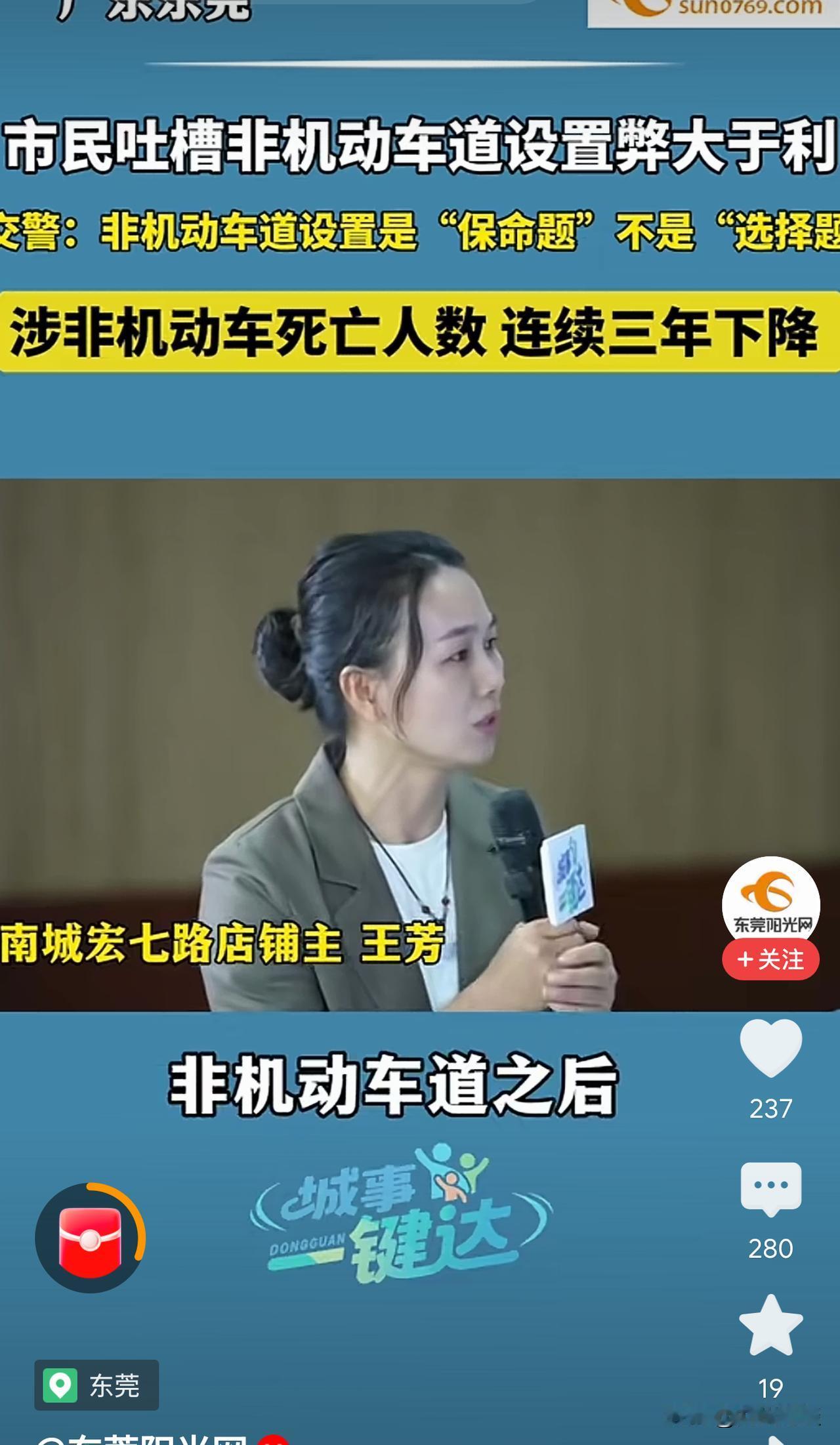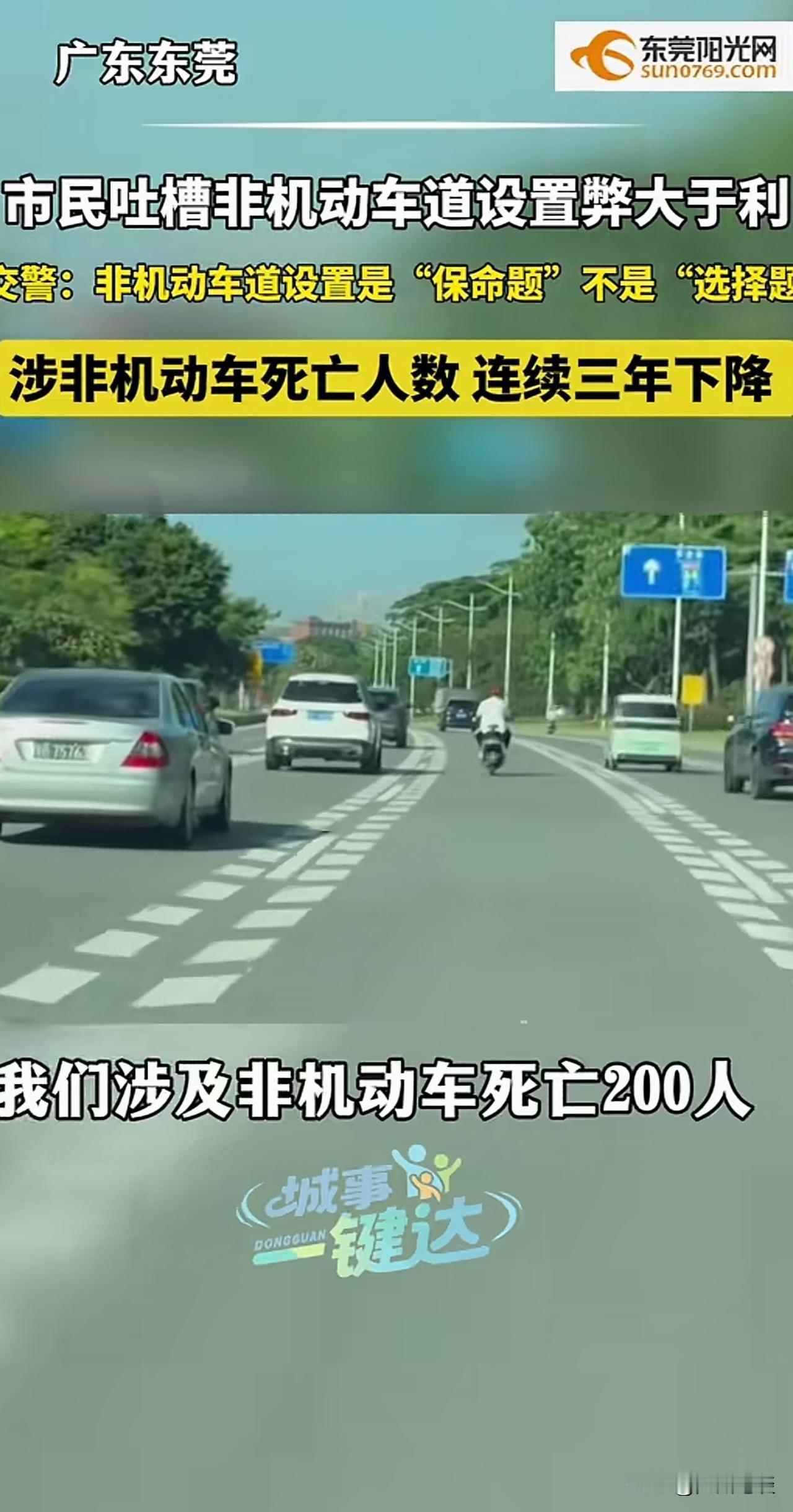 值得全国商户、机动车驾驶人看看!占据非机动车道的危害有多大! 东莞一商户吐槽设置非机动车道弊大于利!官方一针见效,指出利害关系! 设置非机动车道的意义是“保命题”,不是“选择题”! 商户对设置非机动车道提出异议,认为导致顾客没有地方临时停车,弊大于利! 相关部门通过三年数据对比,指出设置非机动车道的重要性,设置非机动车道是“保命”的,不是可有可无的。 商户的生意重要,但占据非停车位的道路停车却是非常严重的,对非机动车驾乘人员造成了极大的安全隐患。 机动车一停就是几个小时,甚至几天的话,造成成千上万辆非机动车不得不冒险借道行驶。 有的甚至需要借道逆行!例如广州海珠区同福路北侧的非机动车西行非机动车道。机动车道是由西向东的单行道,但非机动车道是双向的, 你的生意重要,你的通畅重要,别人的生命就不重要了吗?