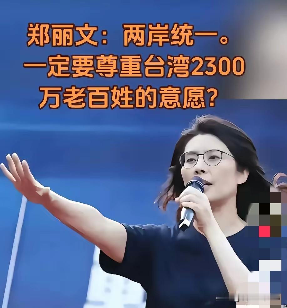 郑丽文女士强调,两岸统一,一定要尊重台湾2300万老百姓的意愿。 这句话本身