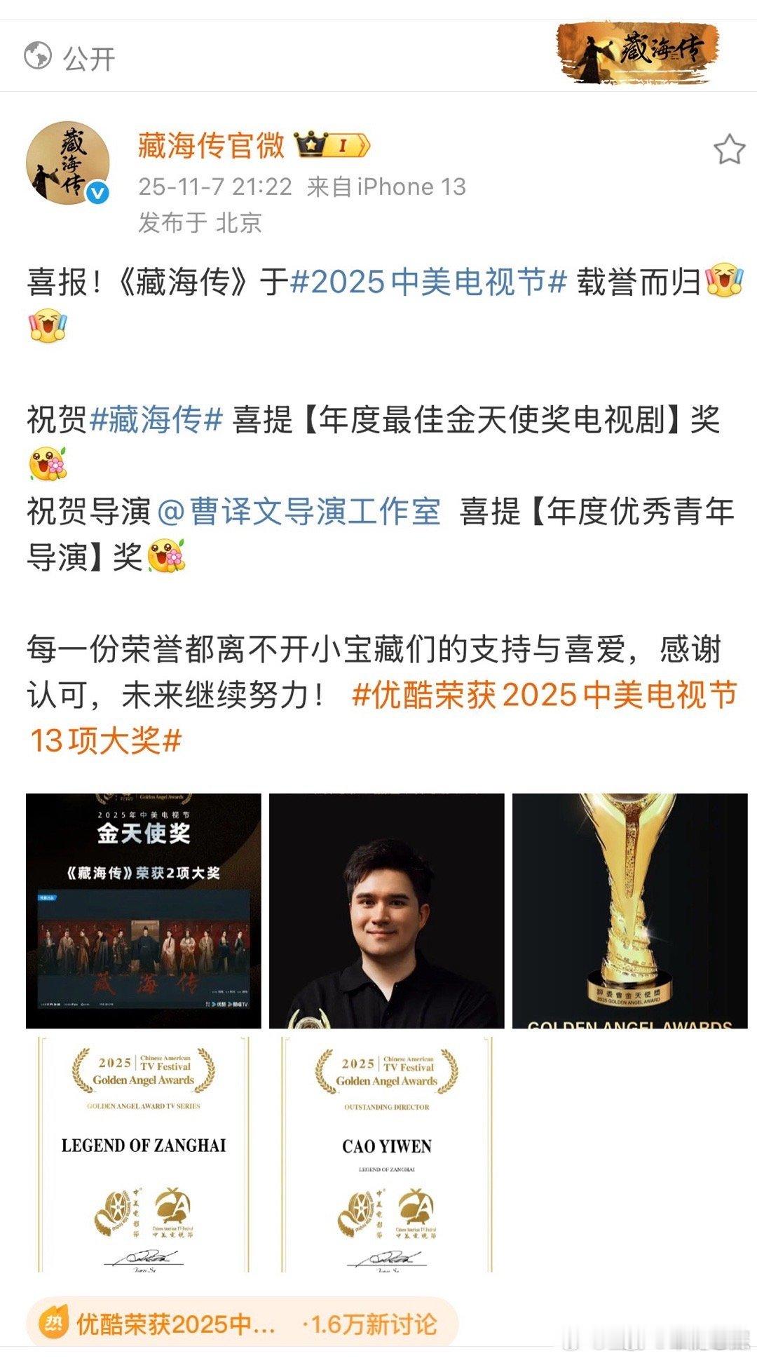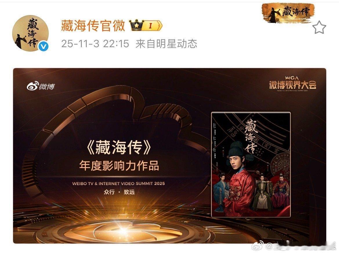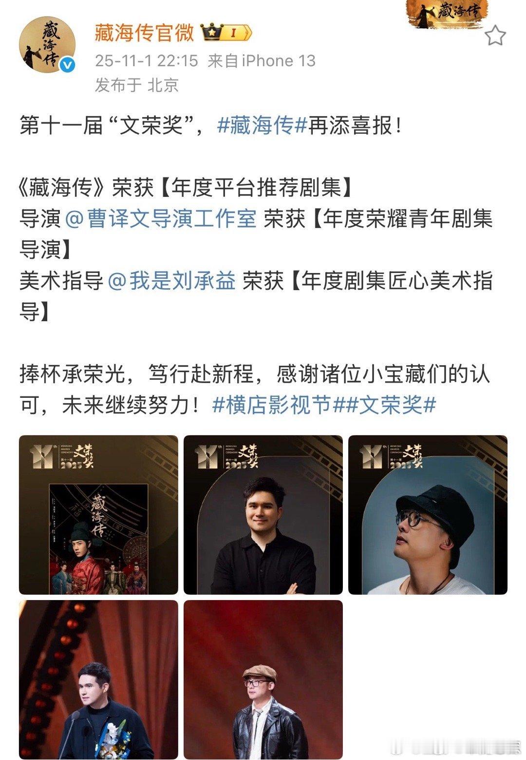 藏海传7天3奖藏海传领奖博主 藏海传领奖博主,7天3奖太厉害了!恭喜肖战主演的现象级大爆剧藏海传,实至名归[good]