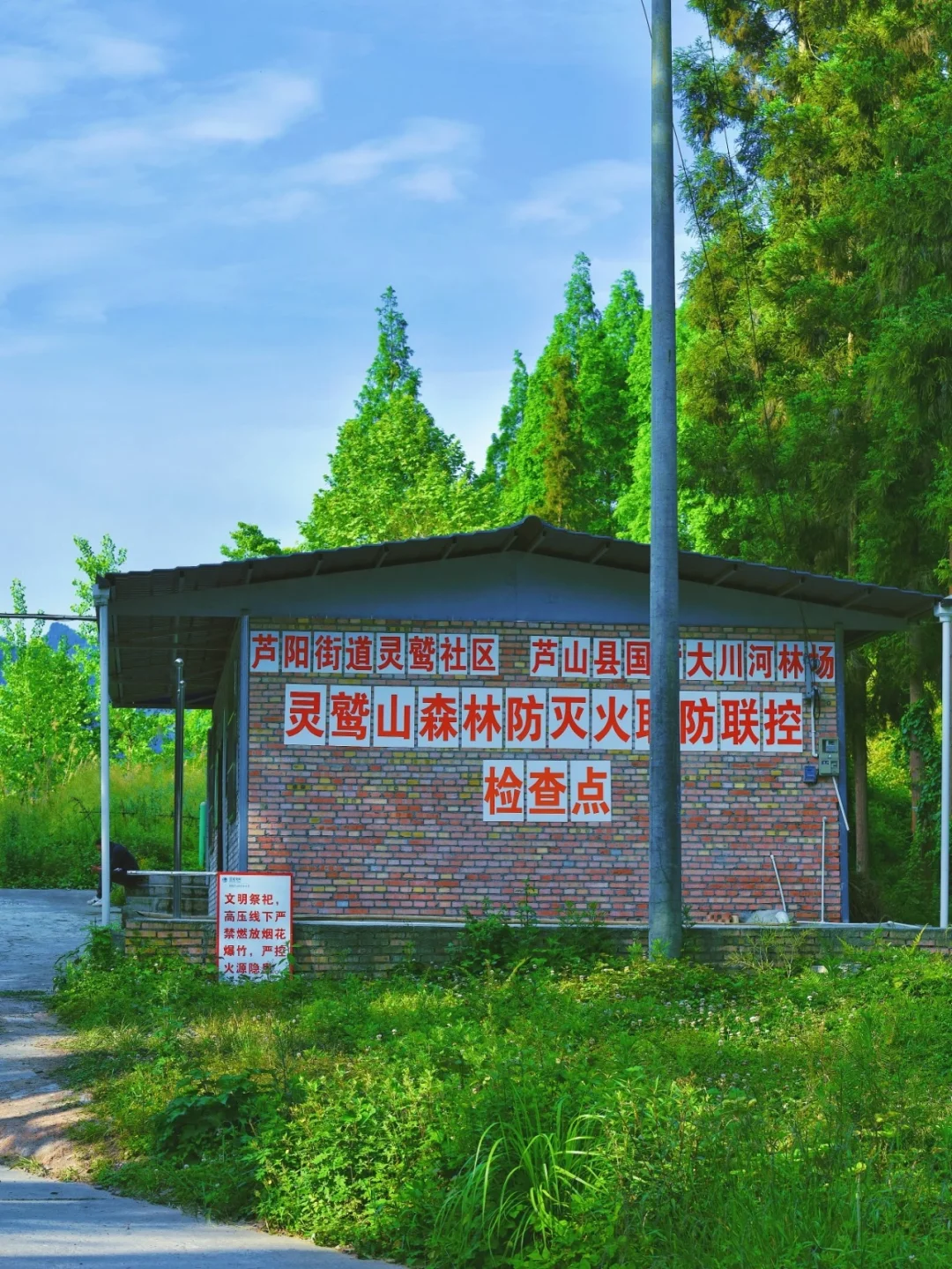 ✔因为没有开发,这里非常隐蔽,需要先导航到【雅安芦山灵鹫山】,山下会经过森林防火点(图9),可以和工作人员确认,然后顺着山路直接开上山,中途不要走岔路