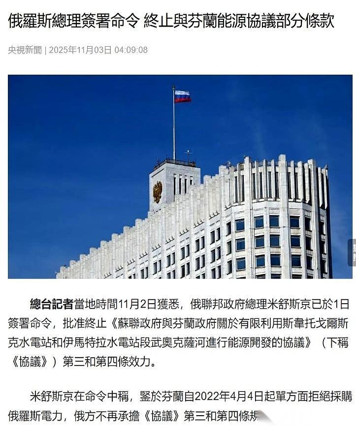 52年。 一张纸,说撕就撕了。俄罗斯和芬兰,半个世纪的能源合作,咔嚓一下,断了。 听着像国家大事,离我们很远?不,这事儿扎心就扎心在,它特别像我们普通人的生活。 你品品。 这就像一对老邻居,几十年来,你家缺点啥,我家匀给你。芬兰的冬天冷得要命,俄罗斯就说,没事儿,我家的电分你点,保证你家暖气热乎。 这一匀,就是52年。 现在呢?院墙中间的那个小门,不仅锁了,还拿水泥给糊上了。 俄罗斯那边说,对不住,不是我不讲情面,是你家门口新站了个我不认识的壮汉(北约),我心里发毛。我家电多,但安全感更重要。电,我自己留着用,心里踏实。 芬兰这边呢?一夜回到“解放前”。 风电、核电搞得再热闹,也顶不住冬天用电高峰的猛烈一击。能源局的数据清清楚楚,老百姓的账单明明白白。取暖费噌噌涨,不少家庭只能把几十年前的老锅炉从地下室拖出来,烧柴火,烧煤球。 你能想象吗?在2024年,一个高度发达的欧洲国家,有人在用最原始的方式取暖。 这哪是断供电啊,这是在撕掉现代生活的体面。 那条曾经象征着友谊的跨境河流,还在静静地流淌,河上的水电站也还在转,但发出来的电流,却再也过不去了。 它在提醒所有人一个最朴素的道理: 国与国之间,就像人与人一样。好的时候,可以是兄弟,是邻居。但一旦信任没了,那点“情分”比冬天的冰还脆。 说白了,哪有什么天长地久,都是搭伙过日子。 日子过不下去了,就散伙。 最后,为这一切买单的,永远是那些只想安安稳稳过日子的普通人。