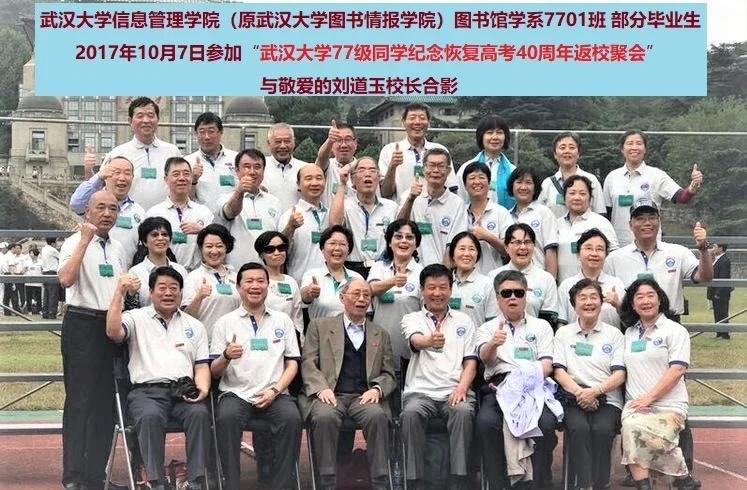 致敬永远的校长刘道玉 怀念刘道玉校长——他能一口叫出我们班许多同学的名字,2017年10月,纪念恢复高考四十周年返校,刘道玉校长已经八十多岁,在前往小操场的山路上偶遇,他还能一口叫出五六个人的名字。我们雀跃着,抢着与老校长合影。这是我唯一一次与老校长合影。武汉大学原校长刘道玉逝世 恢复高考 武汉大学 图书馆学系