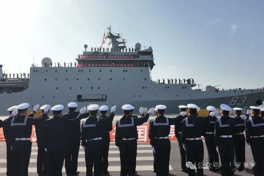 4、11月9日,由戚继光舰、沂蒙山舰组成的海军83舰编队,圆满完成45天远海综合实习访问任务,顺利返回大连。