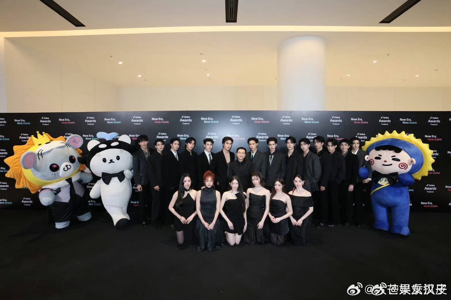 女艺人穿着裙子跪前边拍照 泰国颁奖典礼合照环节男人站在后面,女性跪在前面,虽然泰国文化观念中“跪”这一动作含义与中国不同,但看着还是好令人窒息……