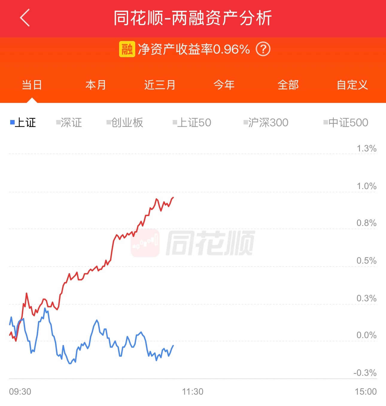 今天还行,跑赢指数,目前上涨0.96%,满仓没有融资。