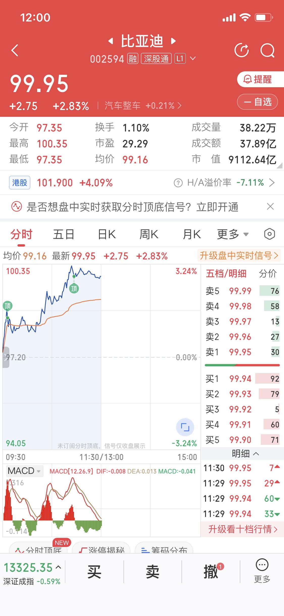 11月10日上午比亚迪这走势太牛了,直接大涨2.83点,一开盘就一路往上冲。要知道,当时大盘高开低走,比亚迪却还这么强势,属实厉害。 之前比亚迪也有不少股价冲高的情况,像25日股价就突破历史新高,收盘大涨5.78%。还有2月11日,A股三大指数回调,它逆势涨超2%,原因是前一晚开了智能化战略发布会,要把高阶智驾技术普及到全系车型。不得不说,比亚迪每次都能搞出大动作,股价表现也相当亮眼,未来说不定还有更多惊喜。