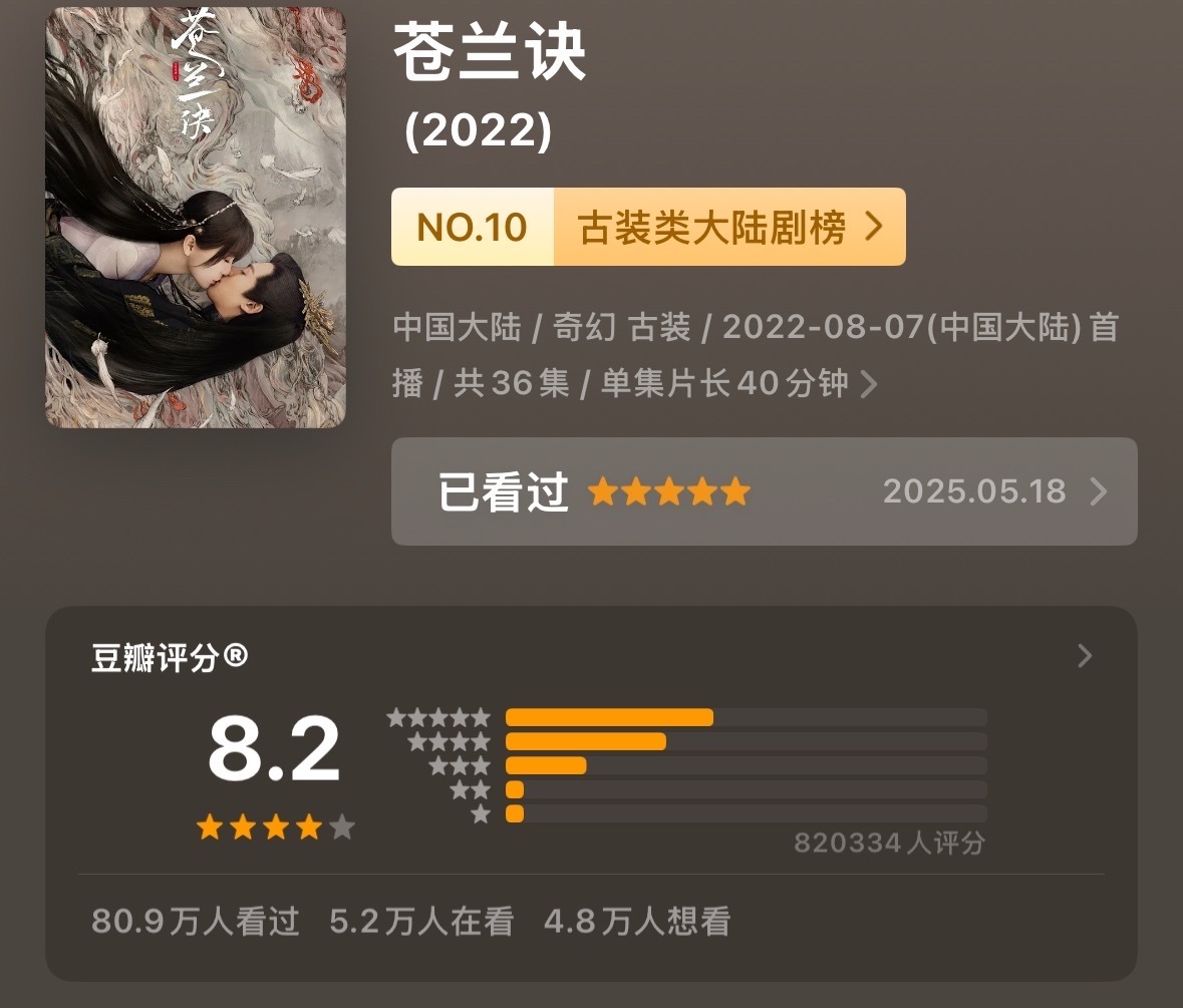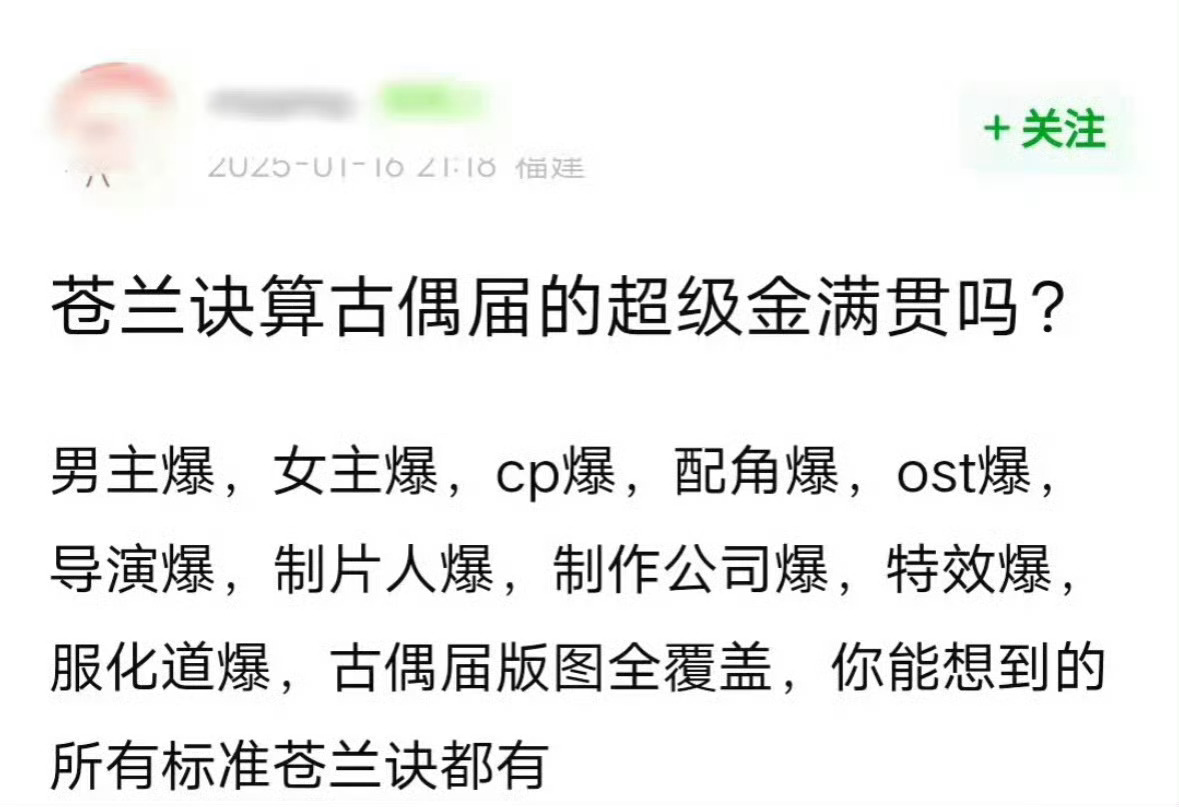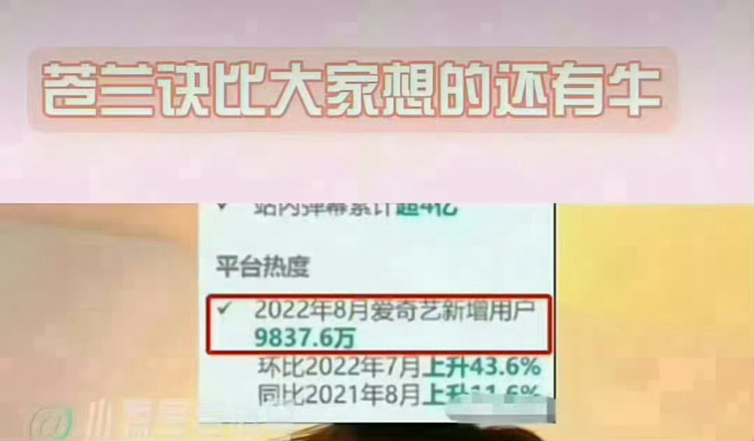 苍兰诀爆人爆歌爆台词从主角到配角都各种爆爆爆,我不知道下家在那里拉苍兰诀出来想干什么,当初苍兰诀给爱奇艺拉新将近一个亿,并且豆瓣89万人评分,评分8.2,一个水剧在那里各种拉踩苍兰诀什么?还有在那里马后炮说苍兰诀谁演都能火的真是梦到哪句说哪句啊,再带苍兰诀就祝你正主糊一辈子[老师爱你] ​​​