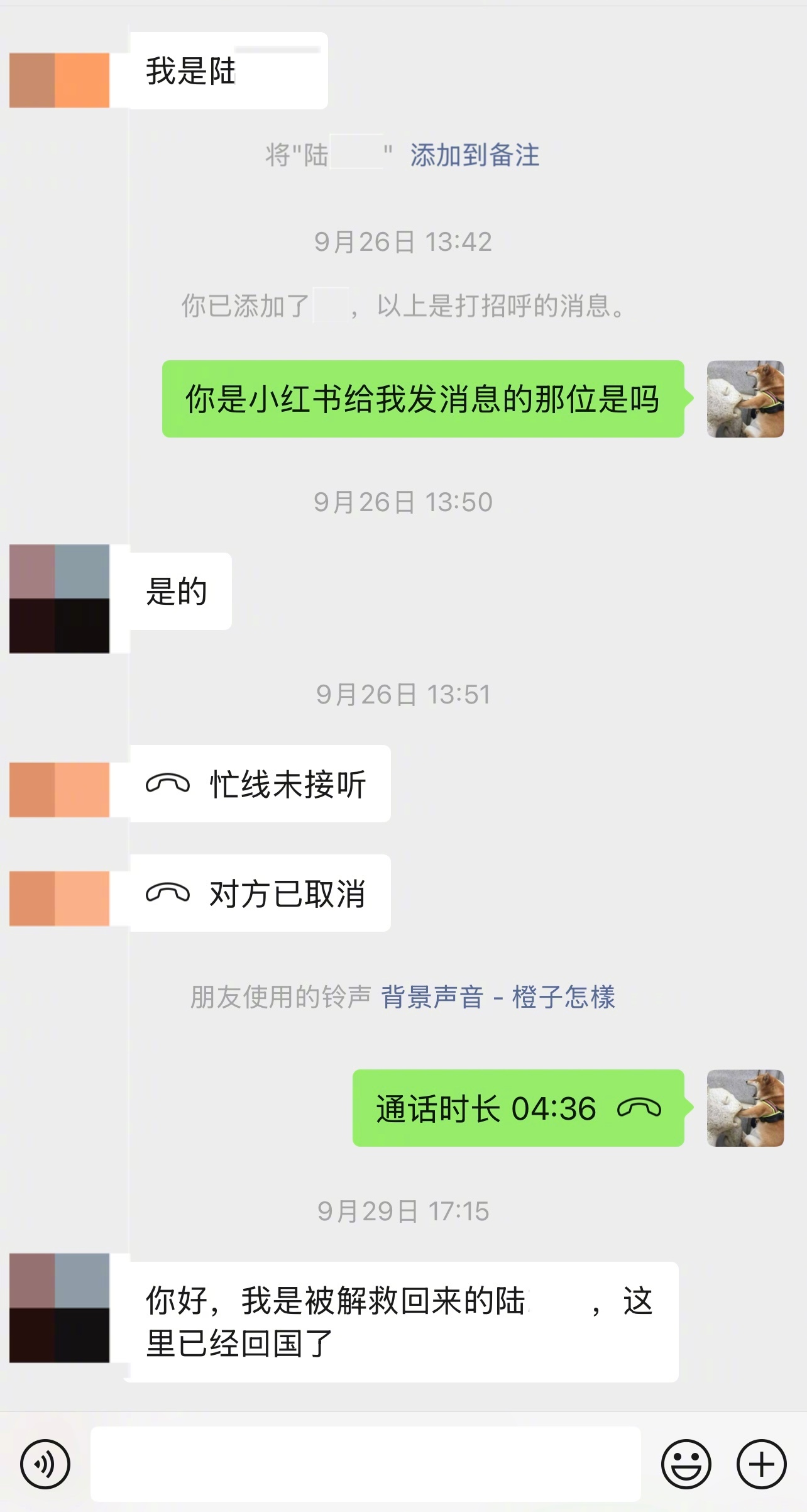 10月8日,陆某告知我,除了最开始的3人因为不会打字被放回来,另外两人在9月31号,每人花了30万才得以脱身。(陆某家花了28万)