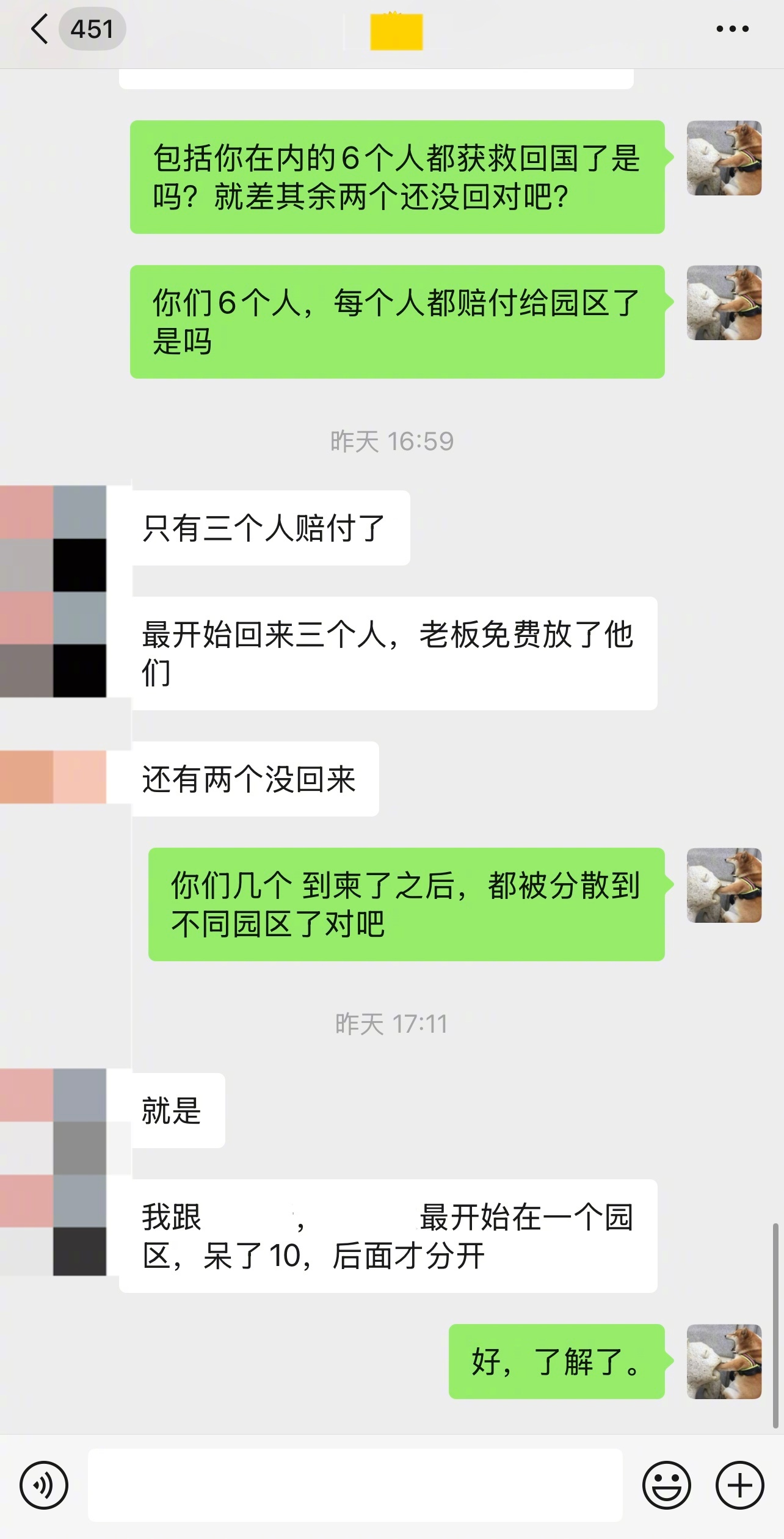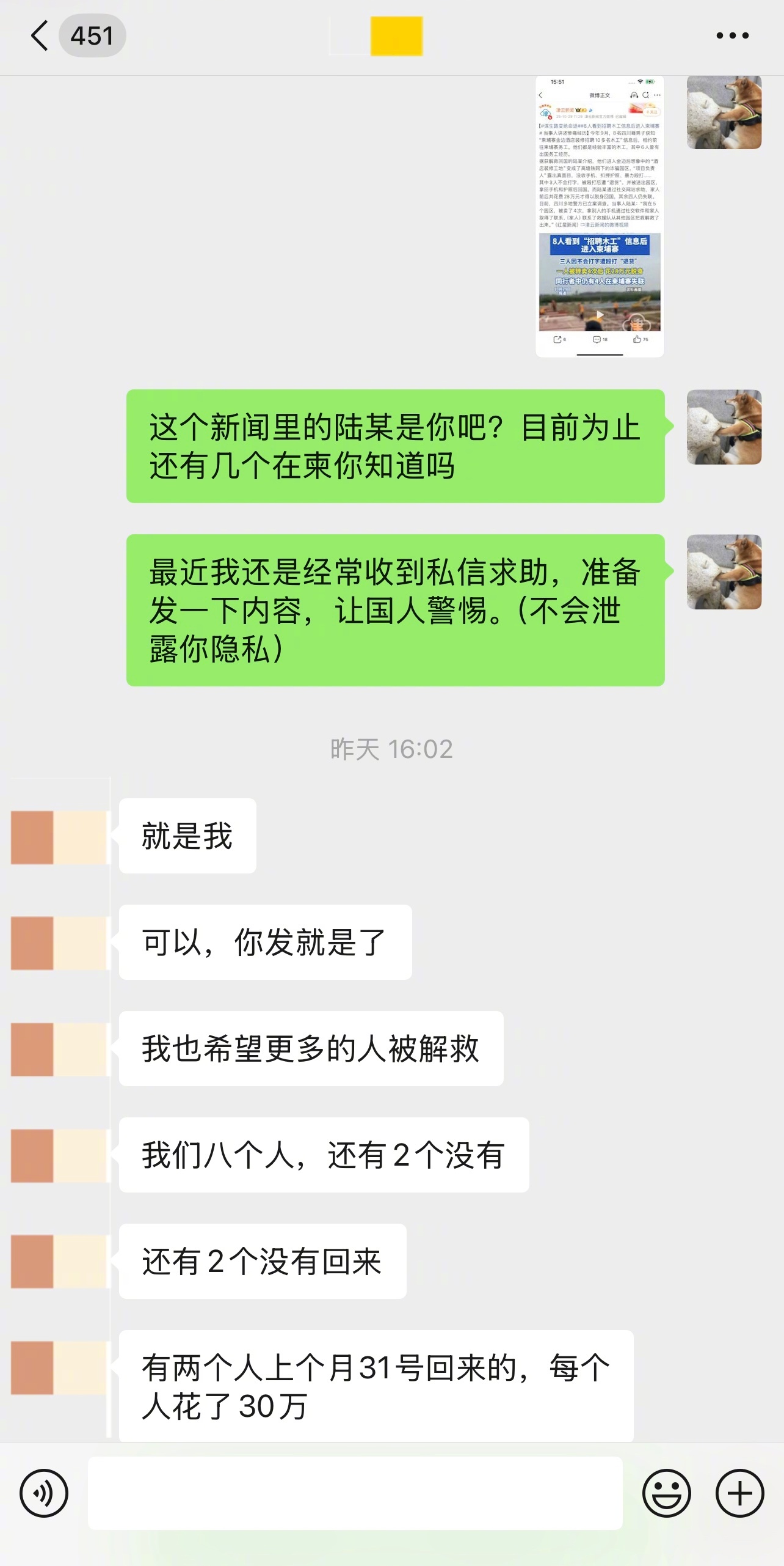 被骗8人中的陆某(已回国)告诉我,他们中3人因不会打字被殴打一顿后“退货”,另3人每个花费近30万得以脱身,另2人至今失联状态。