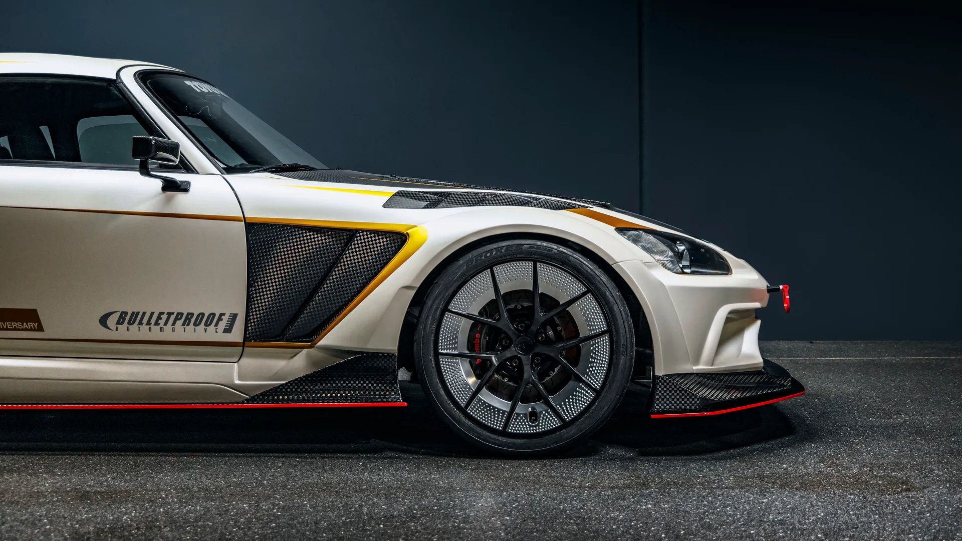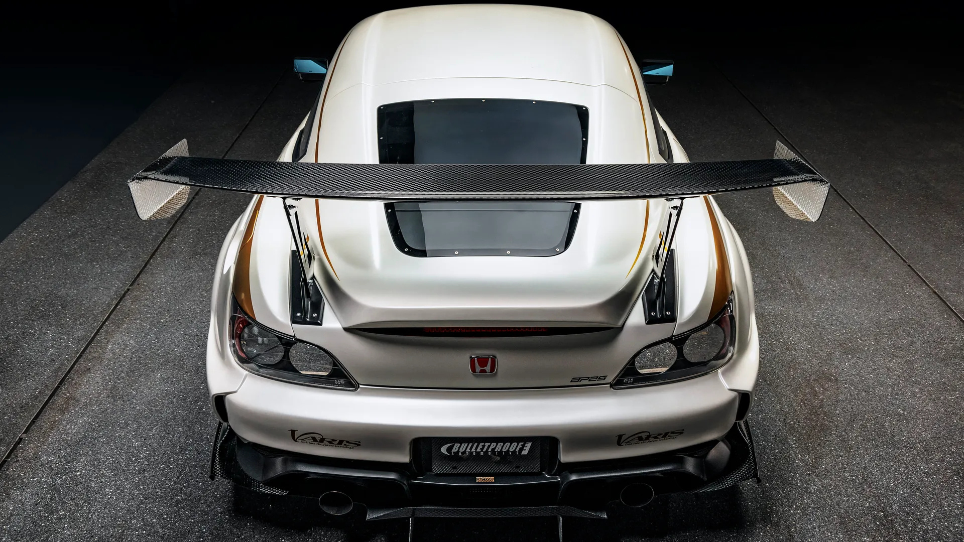 本体是本田S2000,车身引入碳纤维宽体套件,刹车给到前六/后四活塞卡钳,配绞牙避震;原厂F20C 2.0升直四引擎引入机械增压器,搭配中冷、喷油嘴、排气及ECU等升级9300转/分输出580马力。