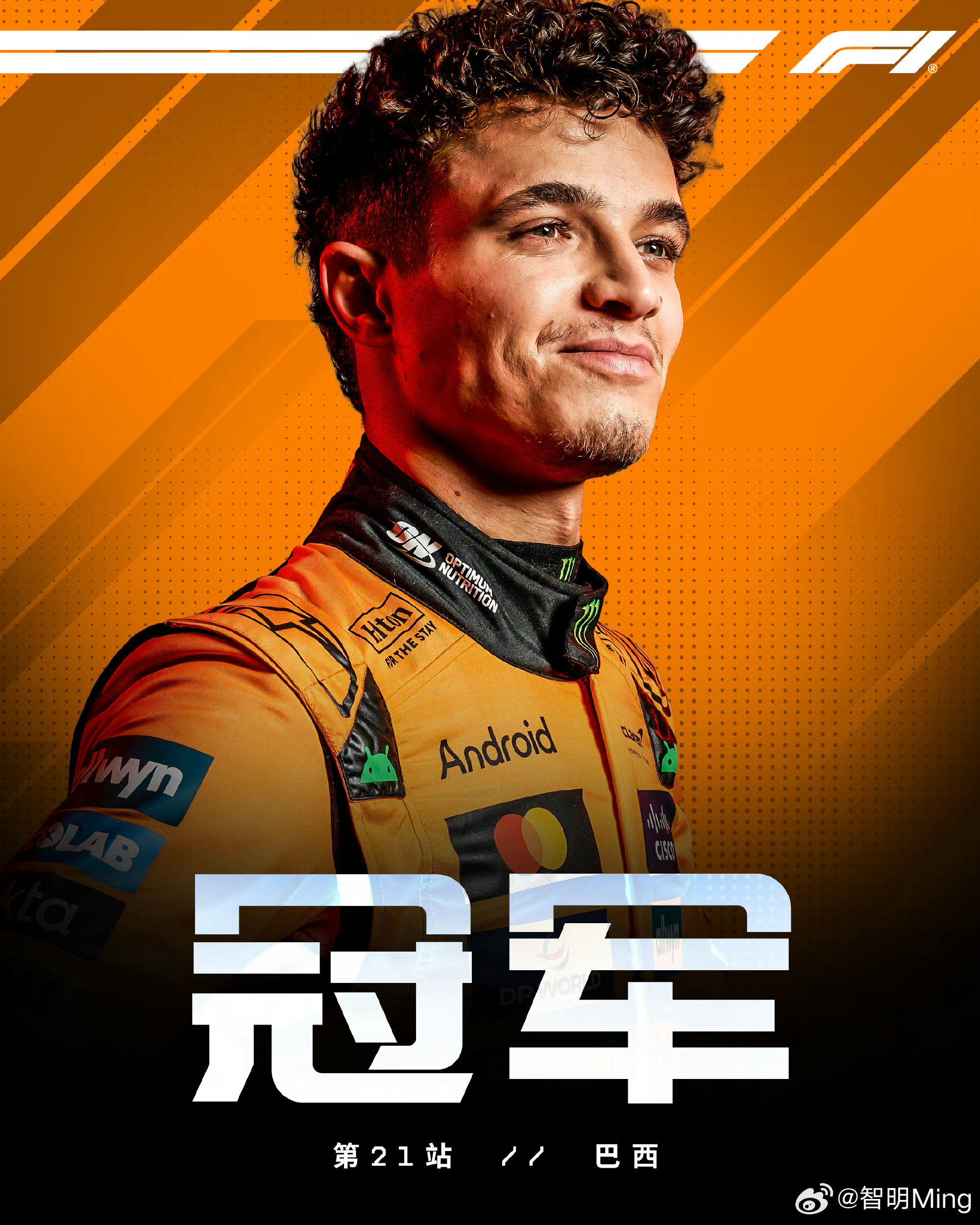 诺里斯毫无意外拿到冠军,积分榜扩大领先优势。今年的世界冠军几率又增加了。