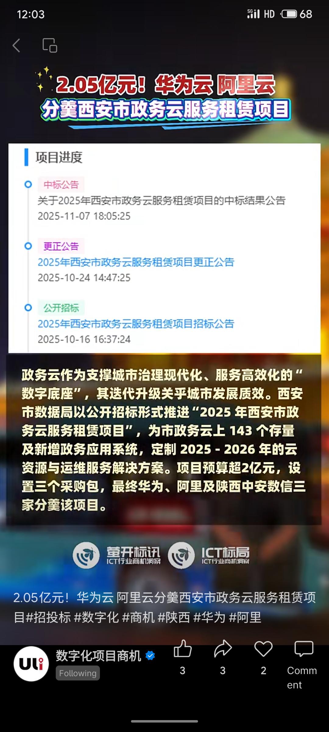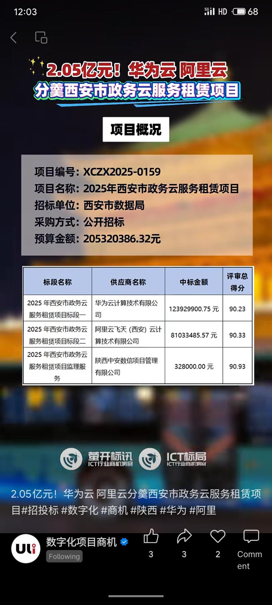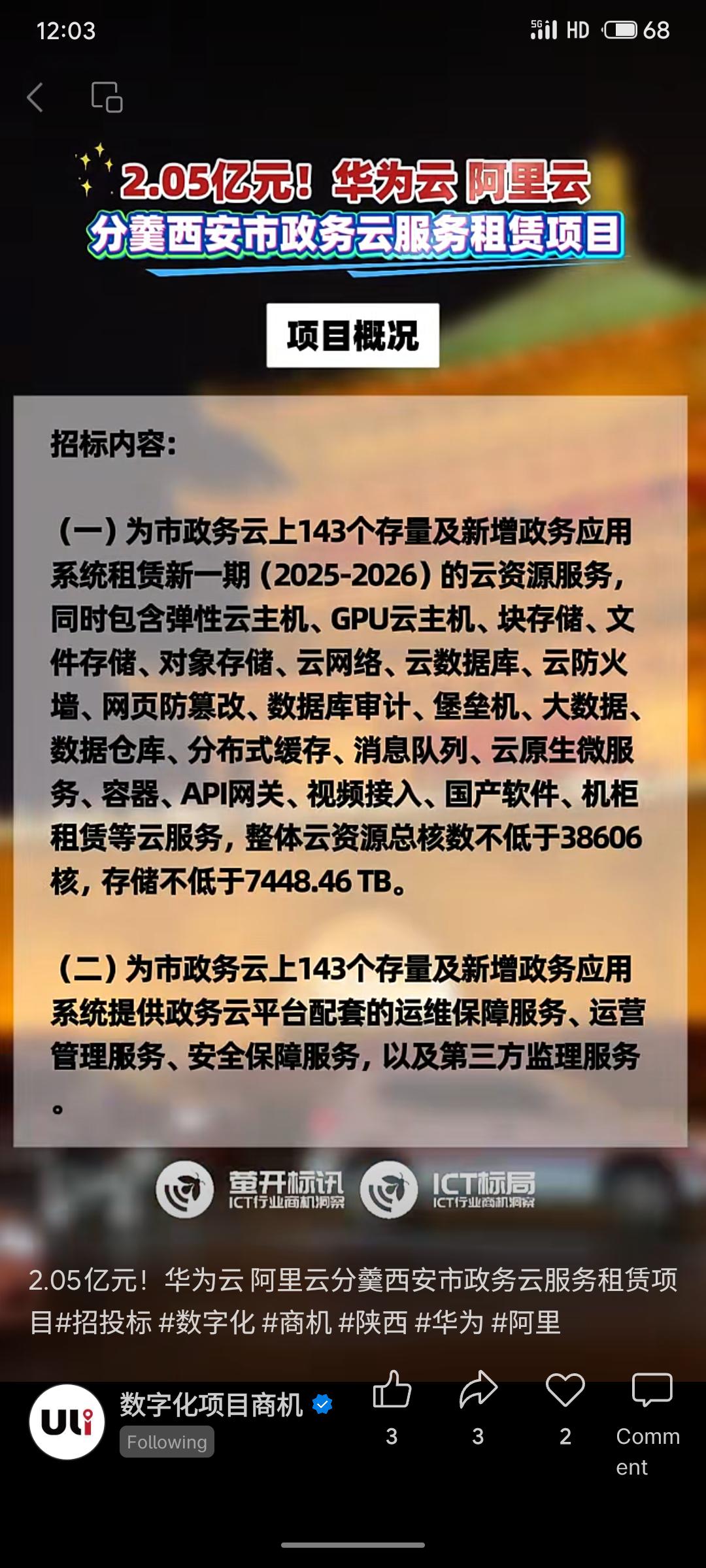 西安市数据局2.05亿元政务云服务项目招标结果公布,华为云与阿里云分别中标核心标段,将为全市143个政务应用系统提供2025-2026年度云资源与运维服务,共同支撑西安数字政府建设。