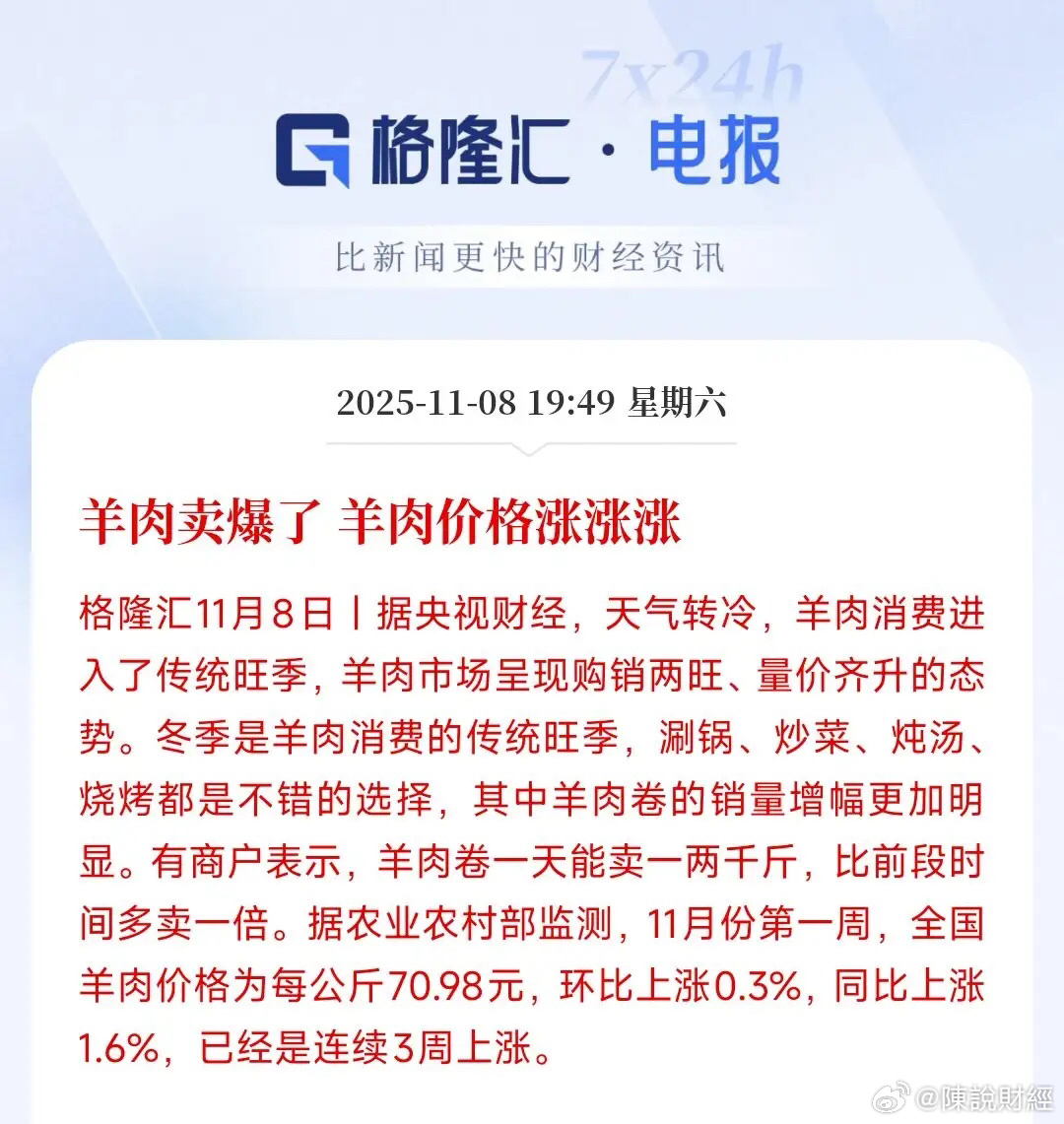 下周养殖业板块要爆发了,羊开始率先涨价了市场反馈,随着天气转凉,吃羊肉的人开始变