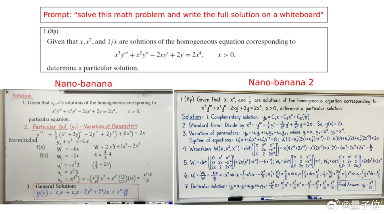 在解决数学问题的对比测试中,1代解题思路好像大致方向是对的,但最终渲染出的公式基本无法理解。