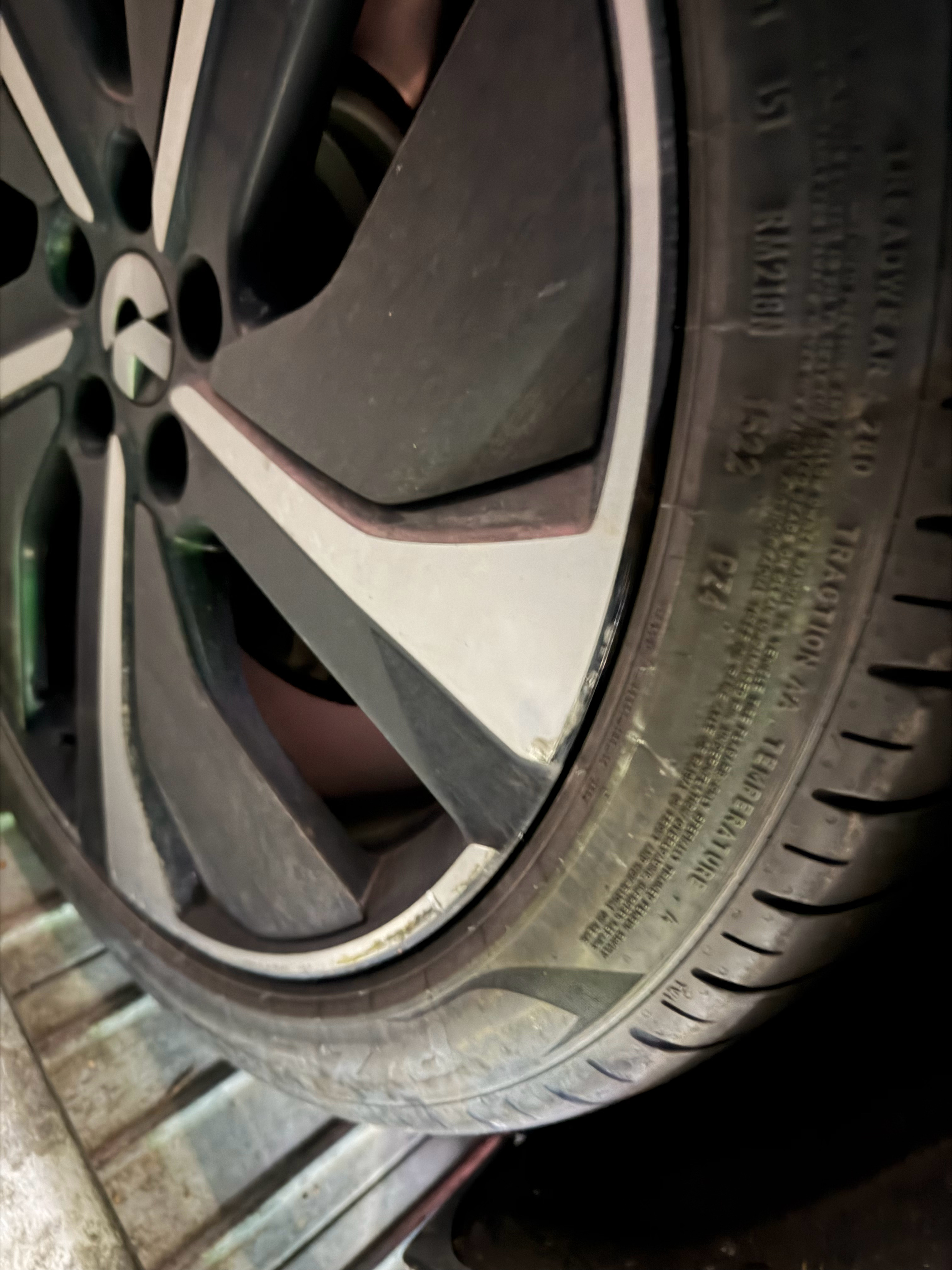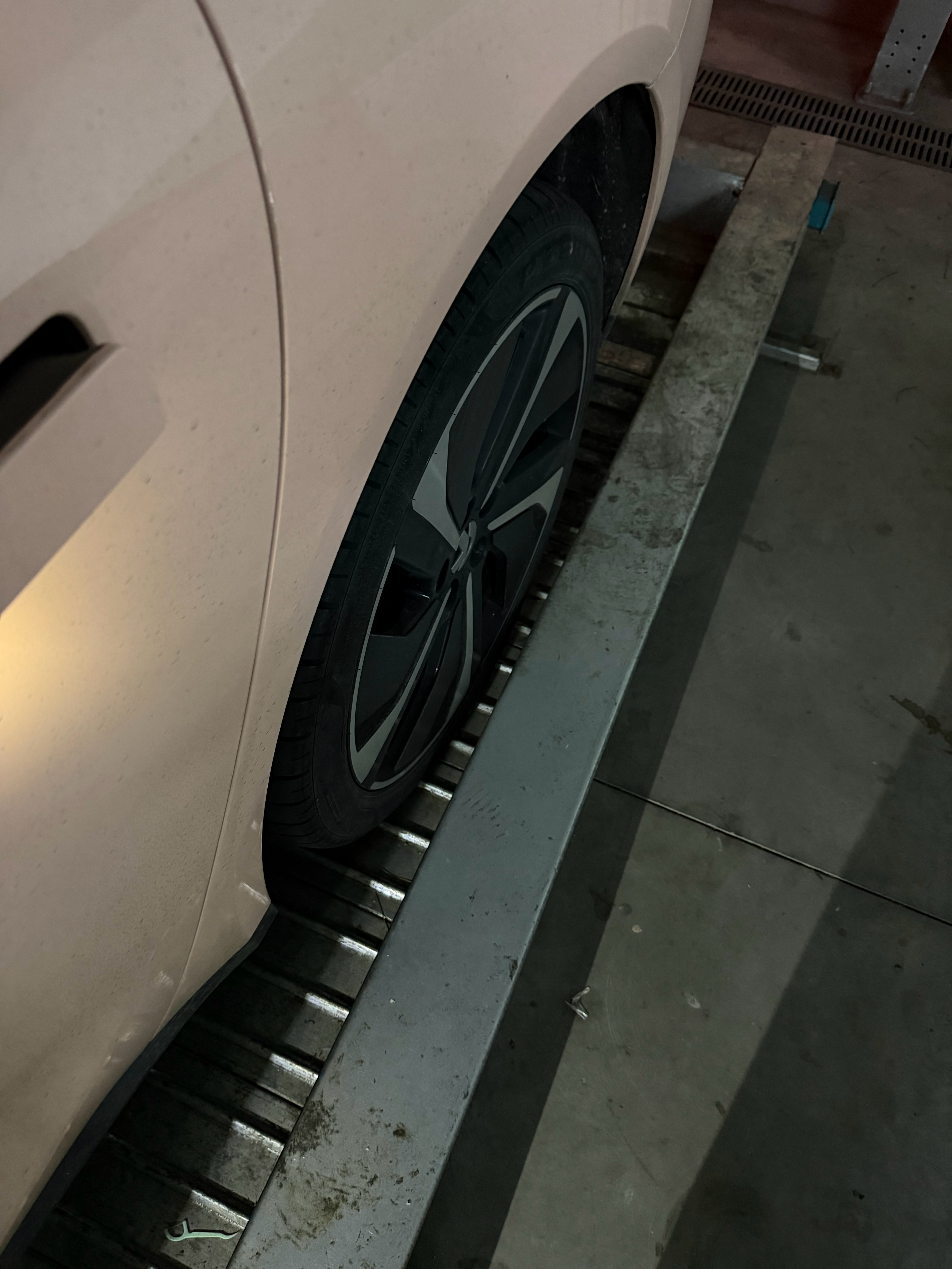 医院没有车位,只能停机械车位,蹭了轮毂。